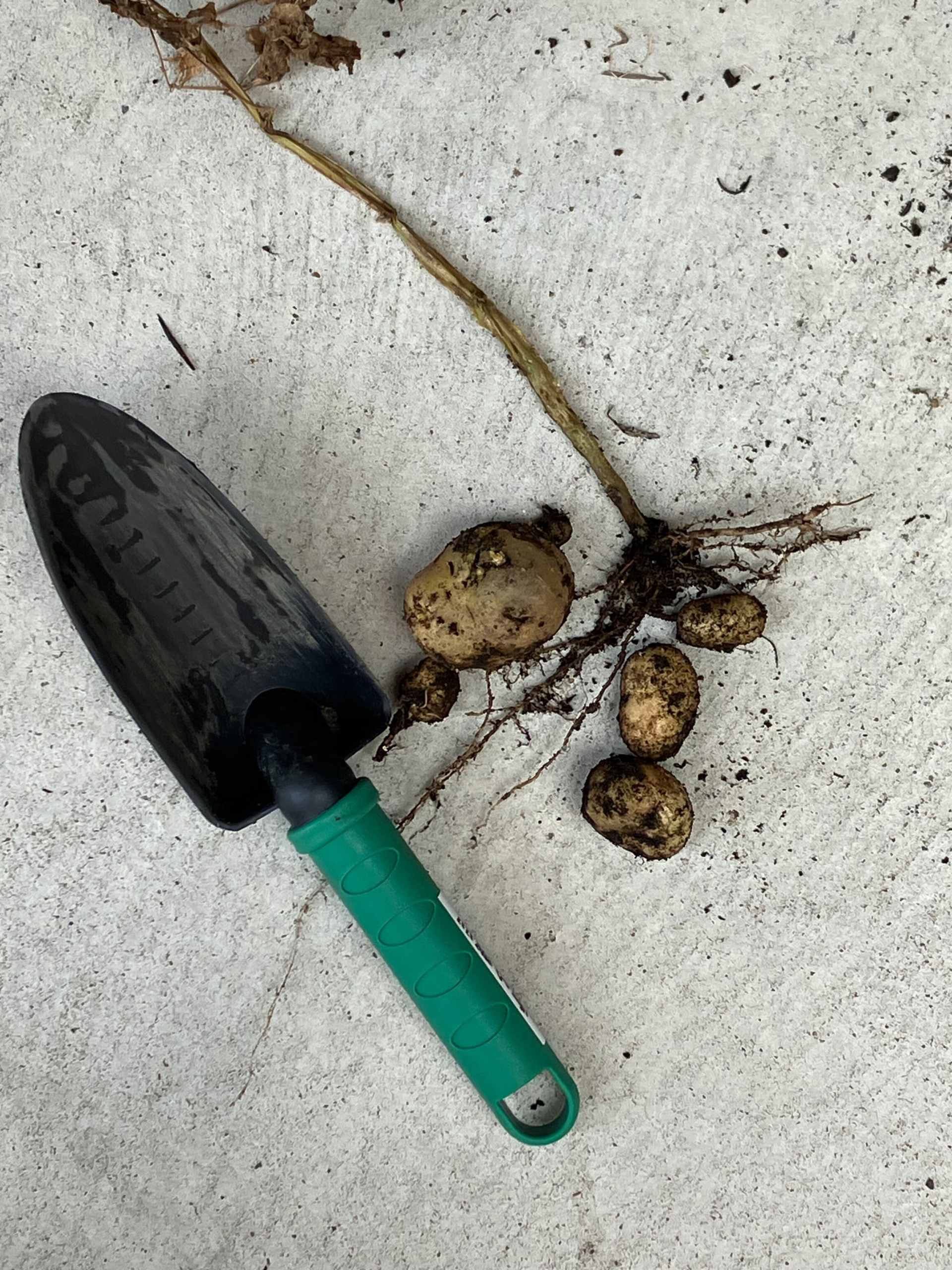 冷蔵庫で芽を出していたじゃがいもを植えると子芋ができていました(^O^)