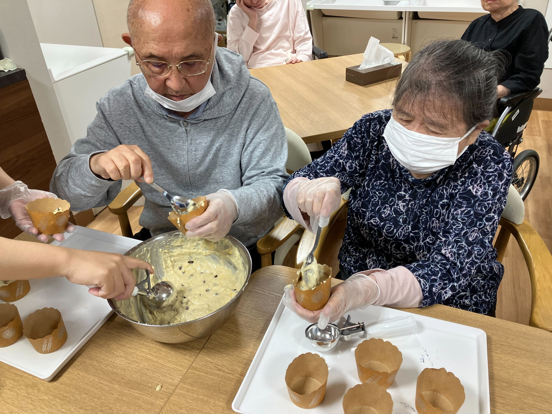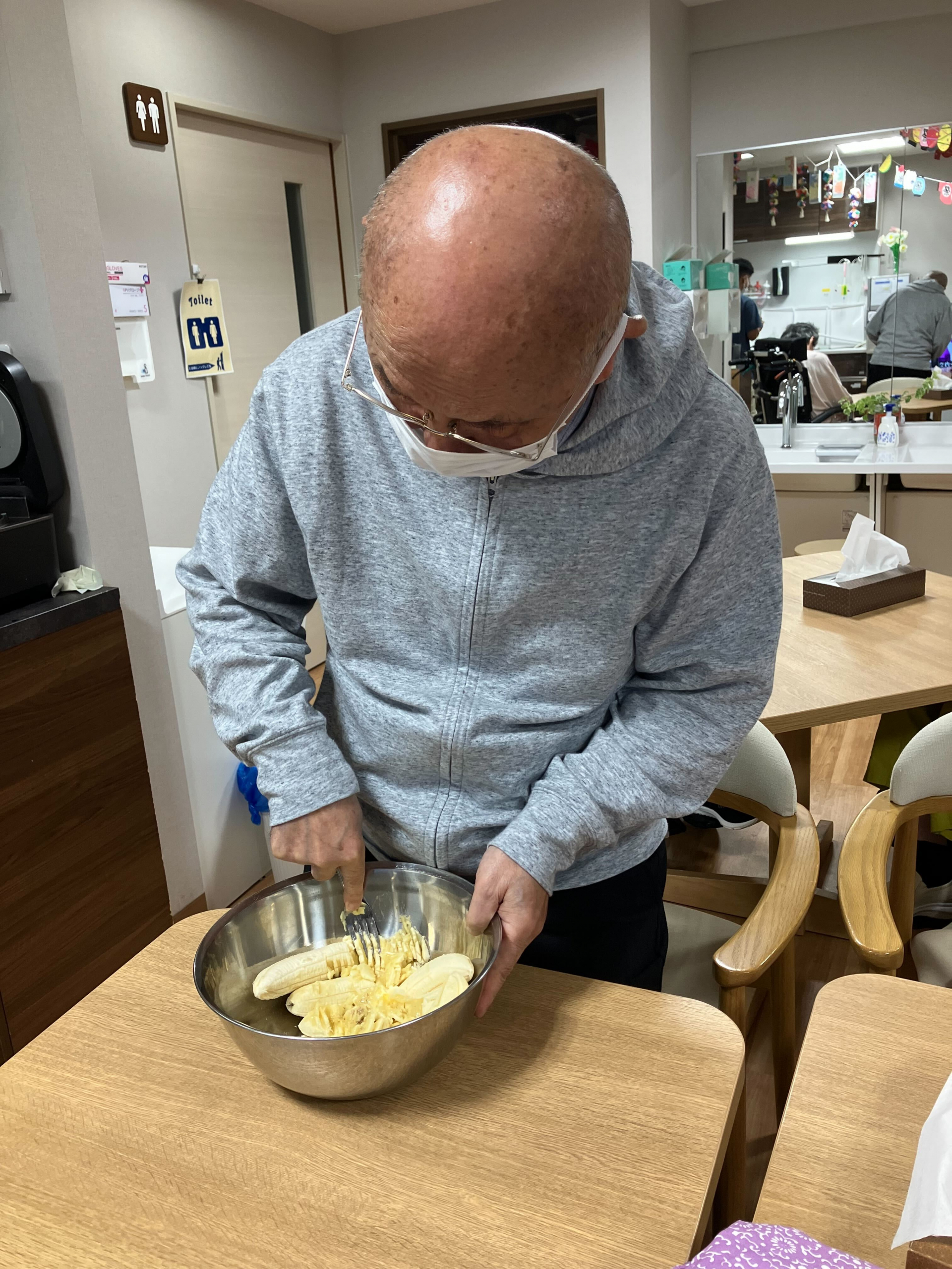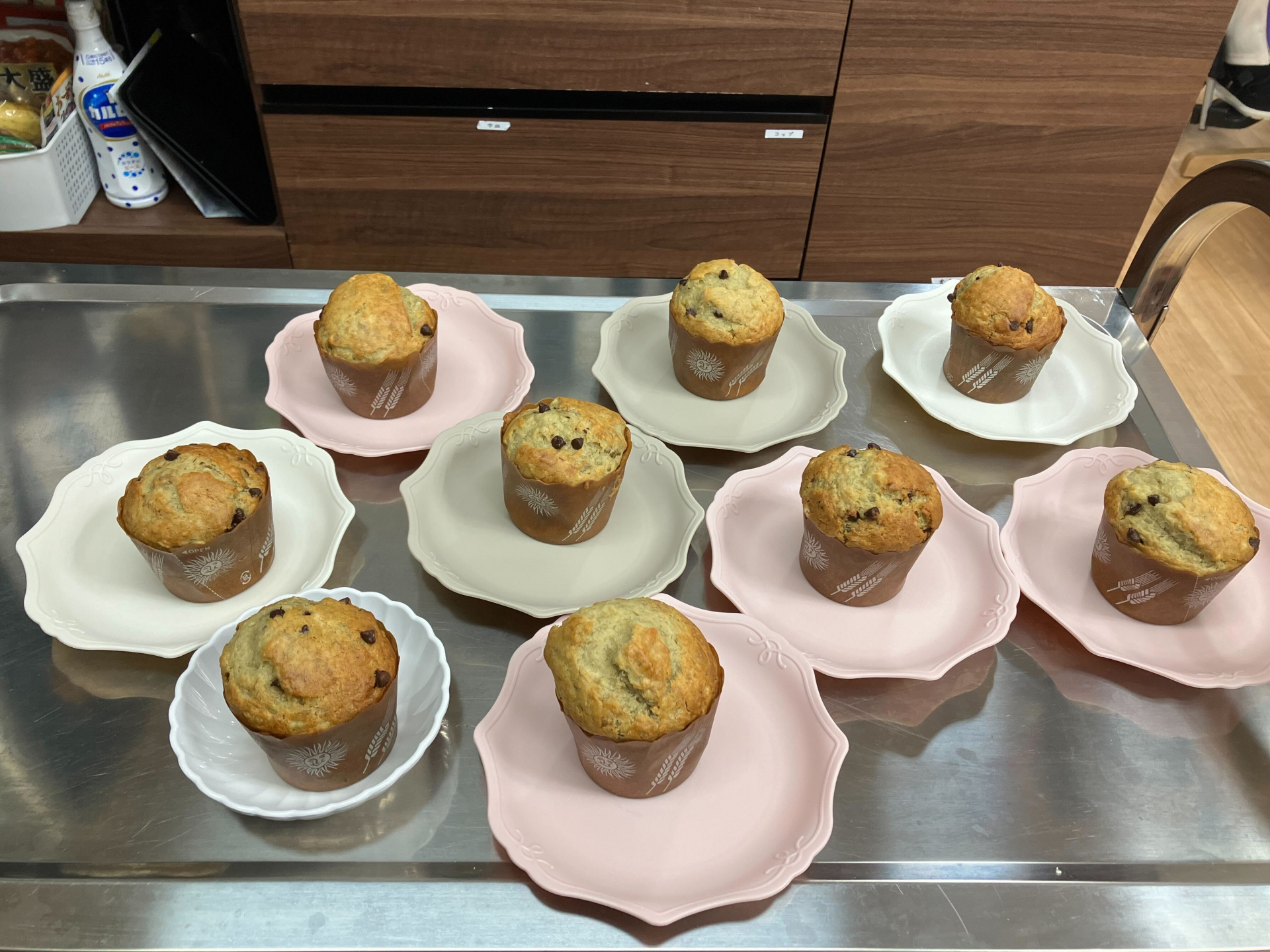 昨日試食していただいたバナナマフィン作りです(^O^)