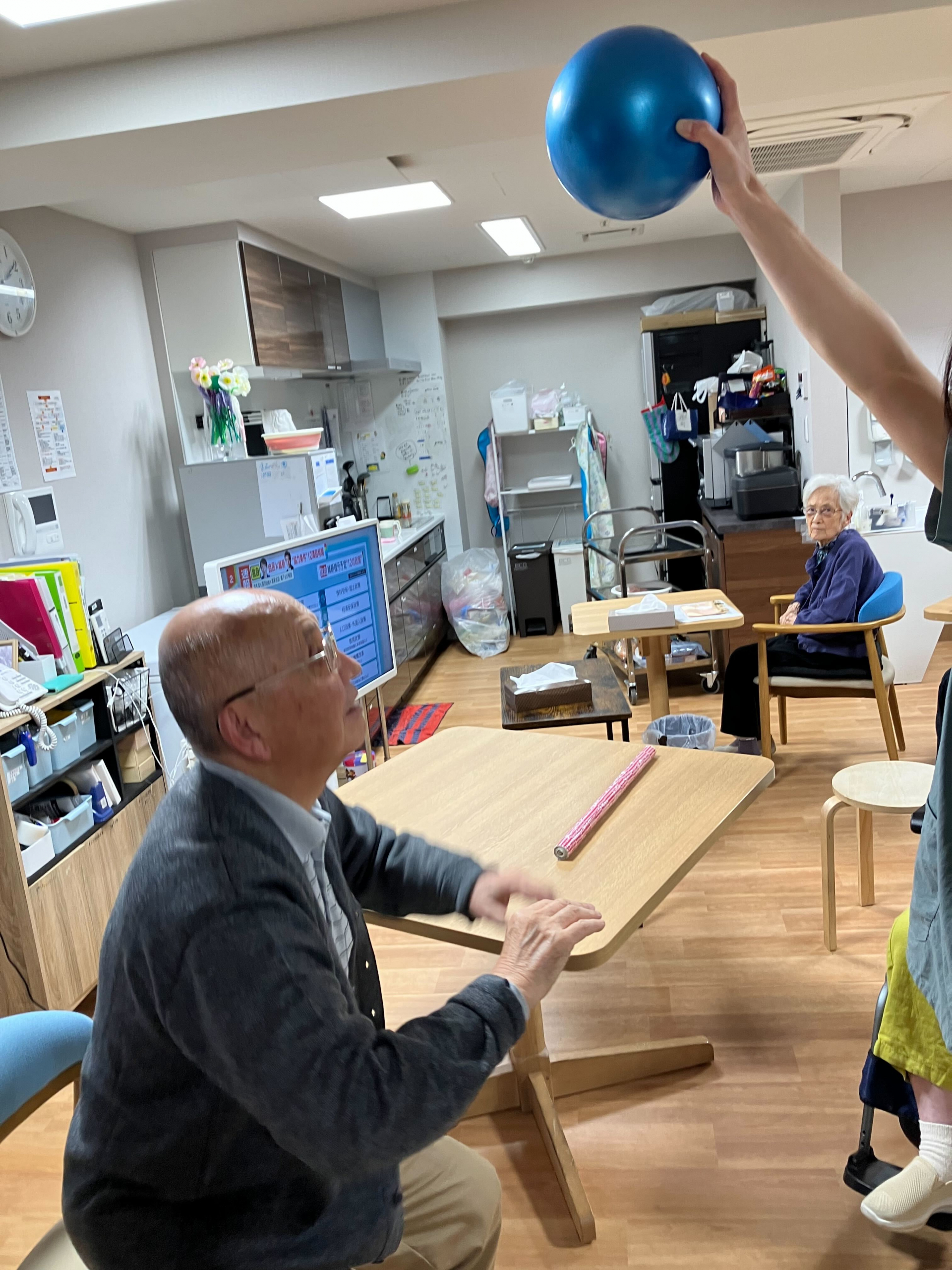 K様は棒を使って、関節をのばしたり、的確にボールに棒が当たるよう訓練中(^^♪
