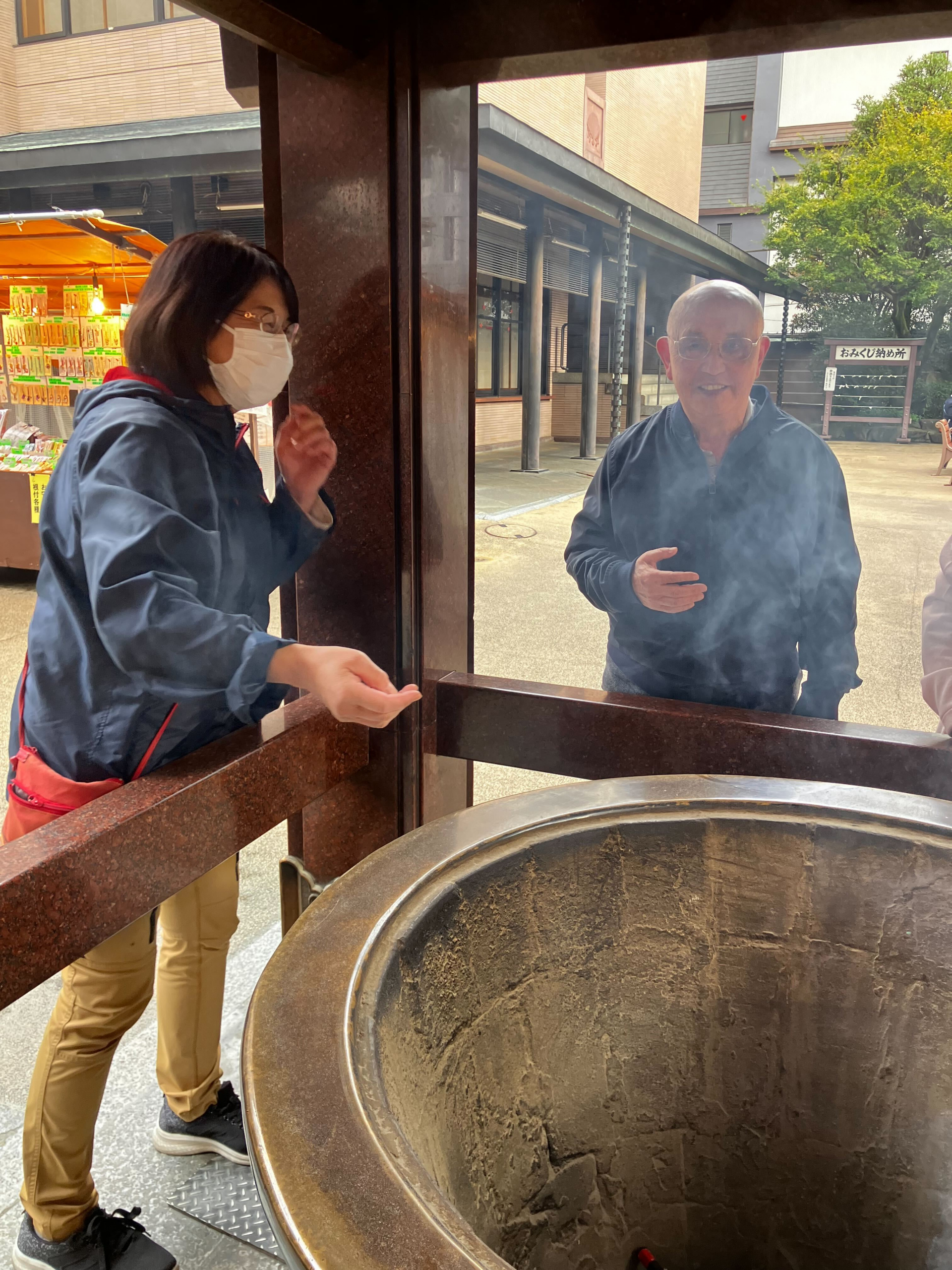 香炉から立ち上る煙を悪いところにかけると治りが良くなる♪ということで、私たちも!