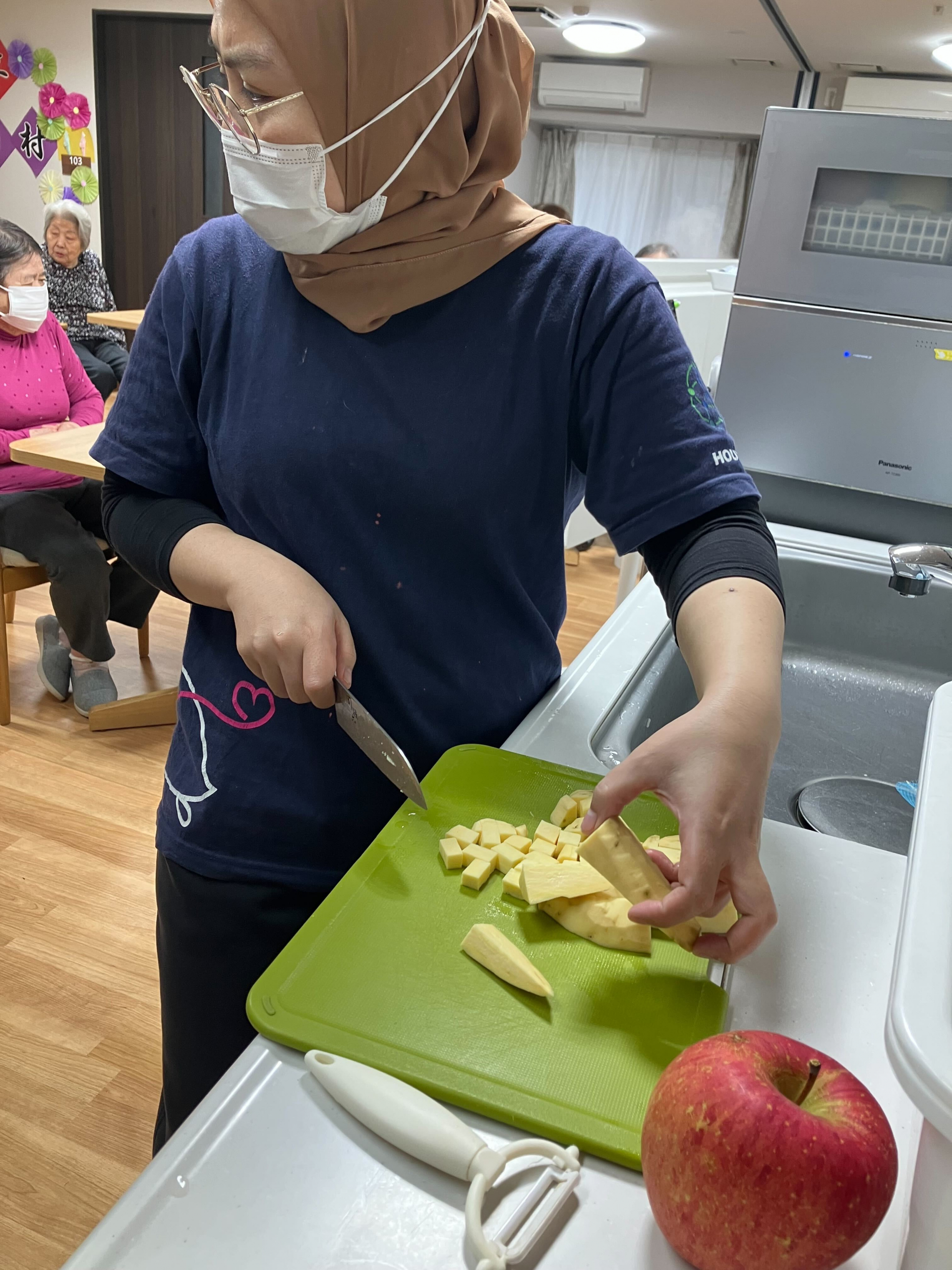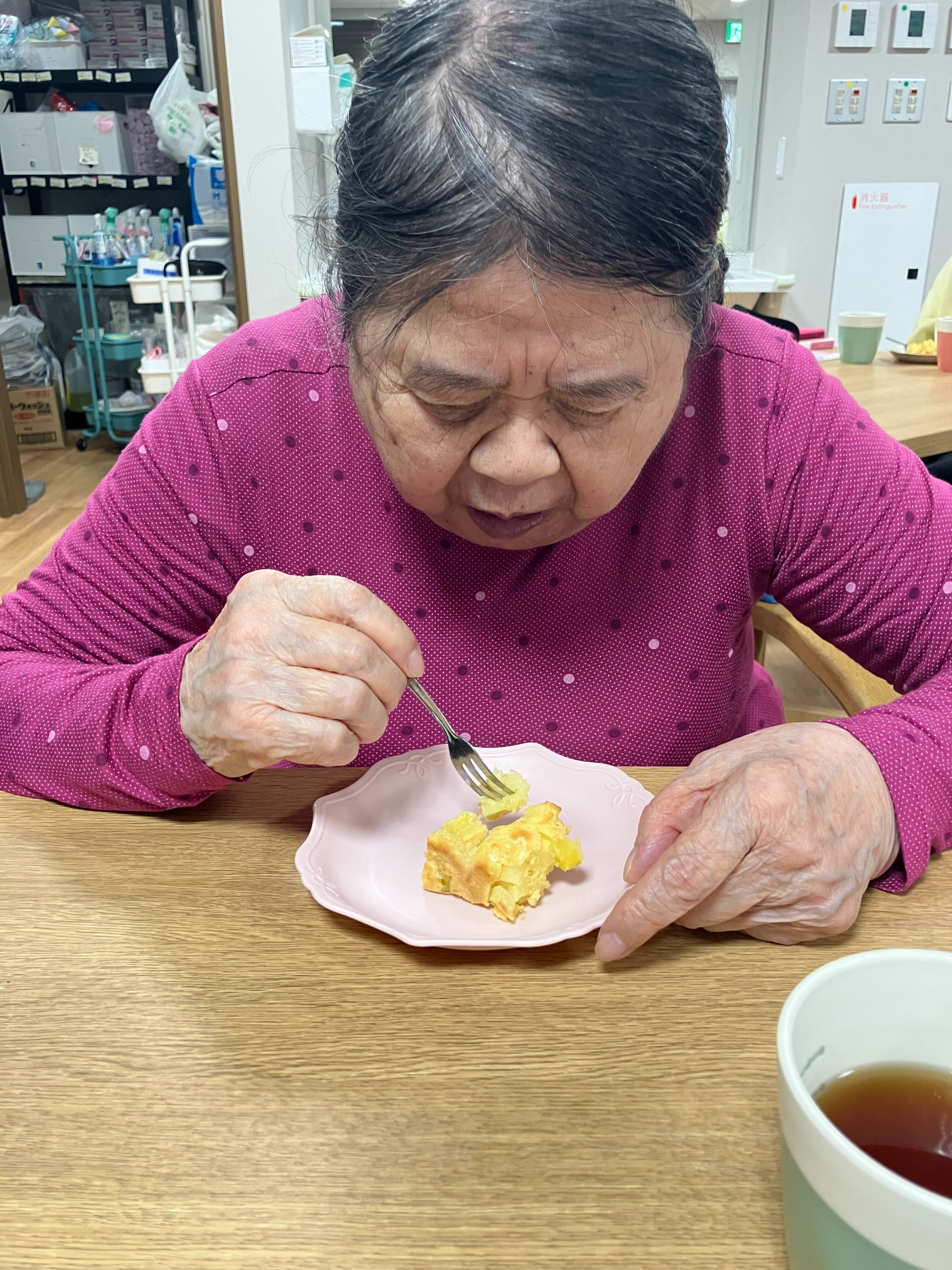 今日はジュニ職員がリンゴとさつまいものケーキを作ってくれています(^^♪