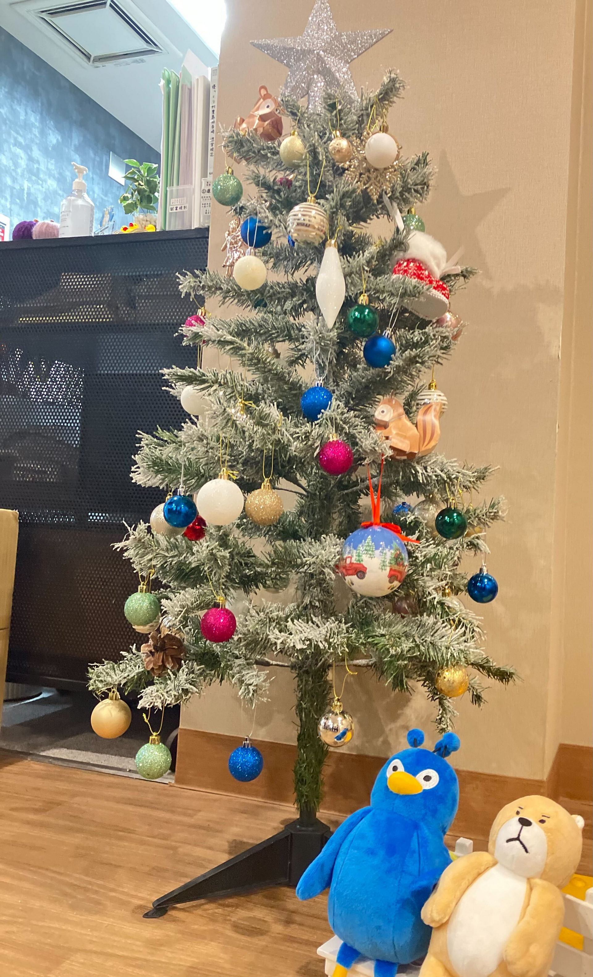 今日は玄関前に置くクリスマスツリーを飾ります(^^)v