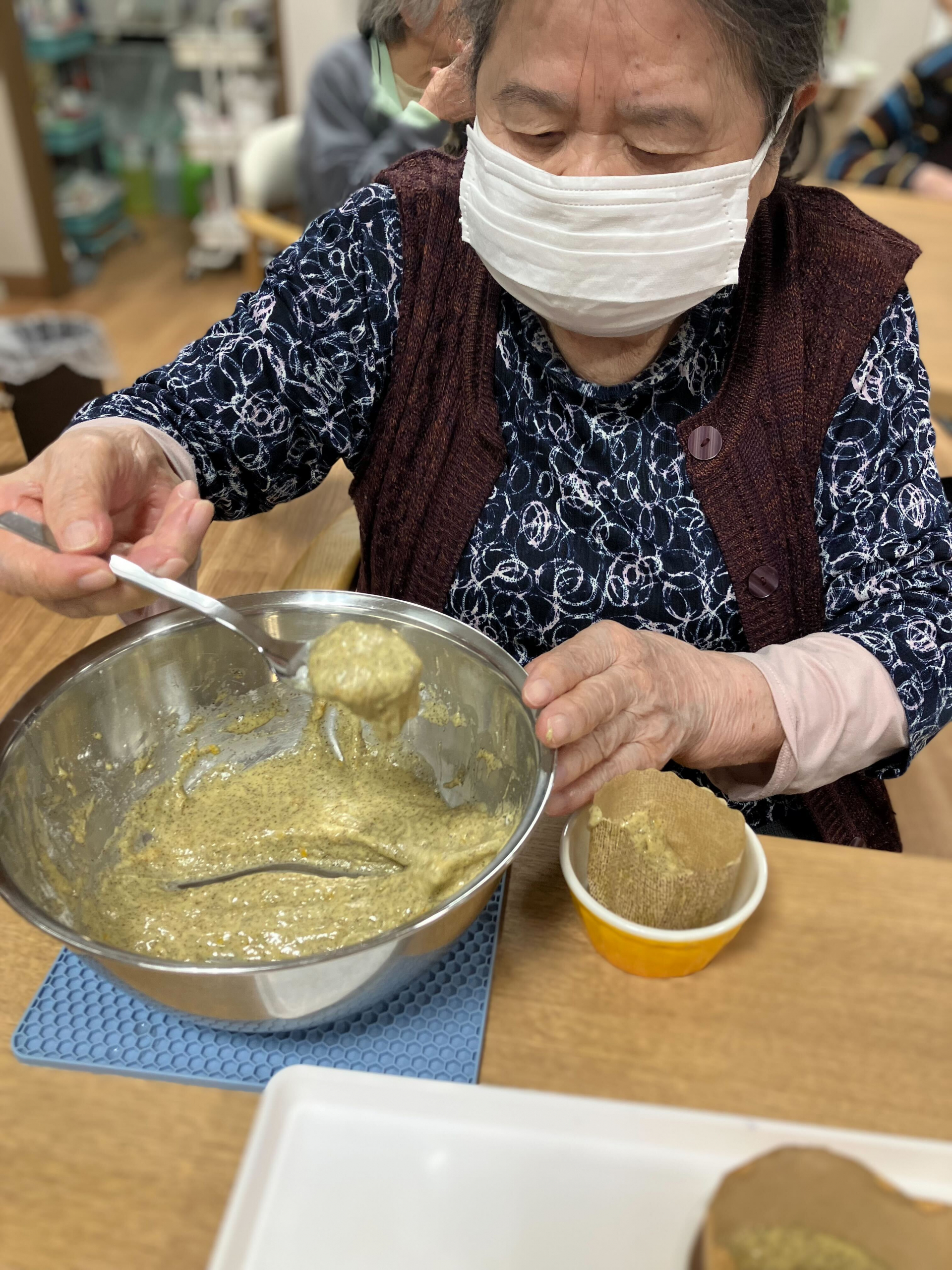 今日のおやつは「ゆず蒸しパン」です(^^)v