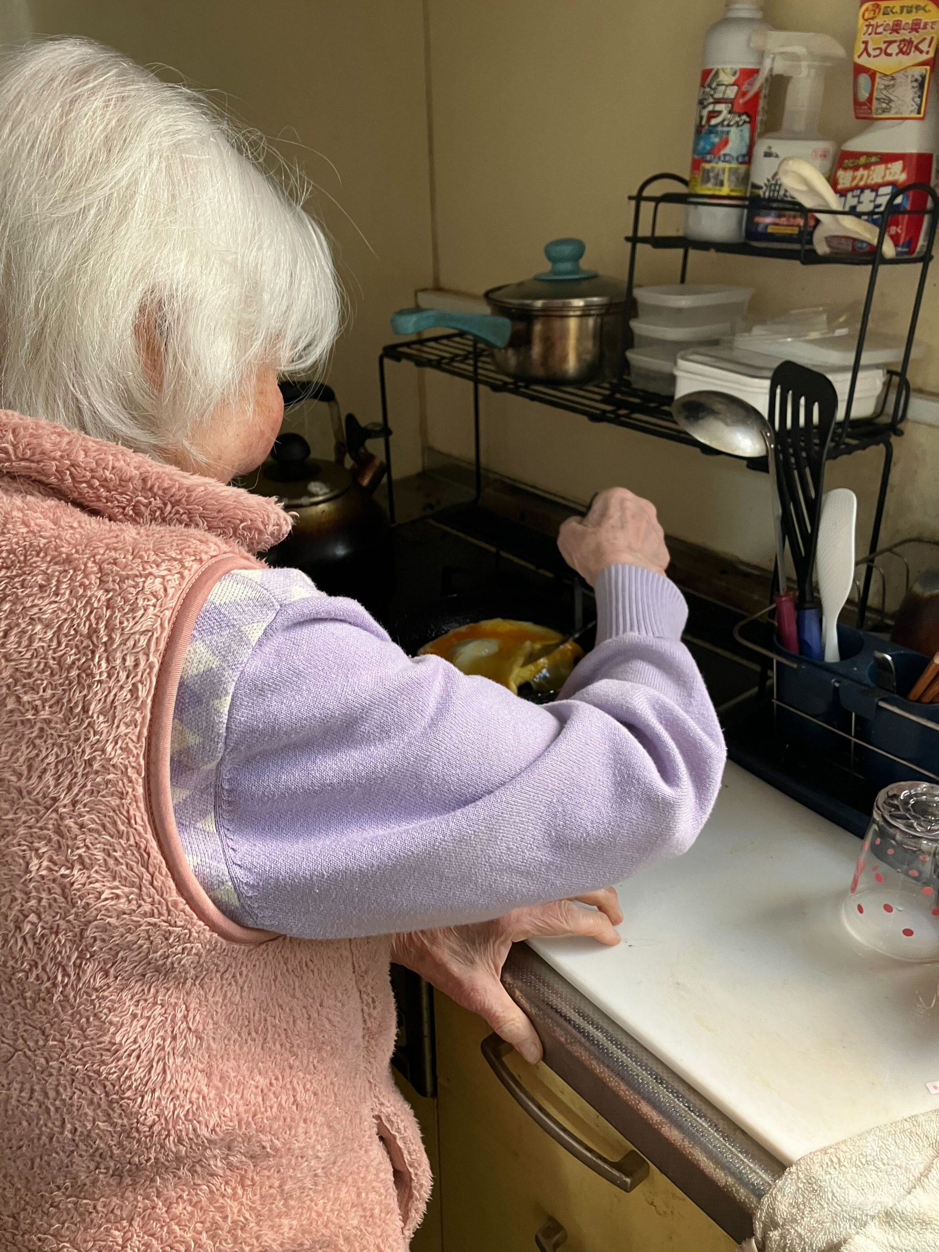 息子さんのために卵を焼いています(^O^)