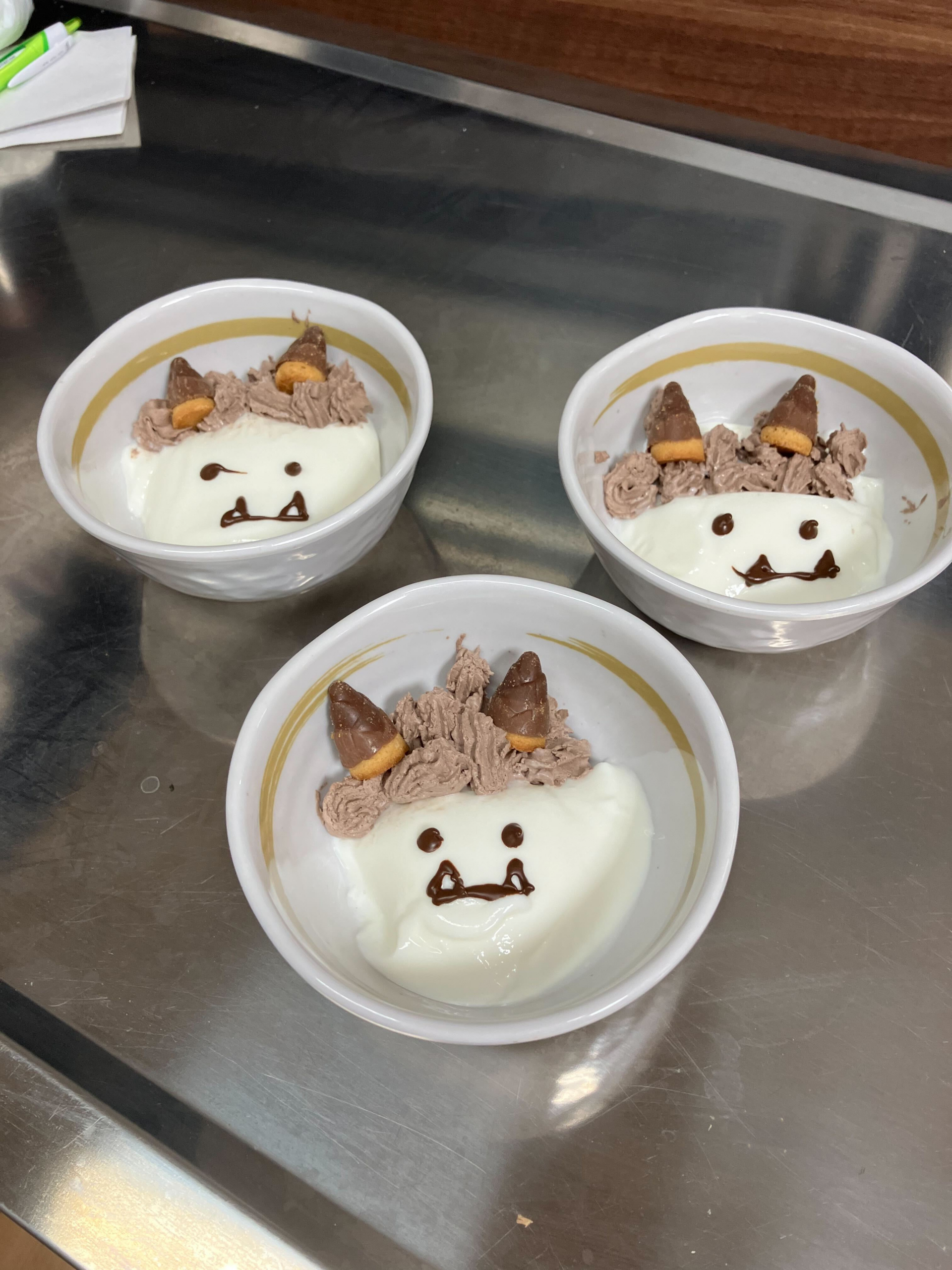 パンナコッタとチョコホイップ、たけのこの里でできた鬼なので