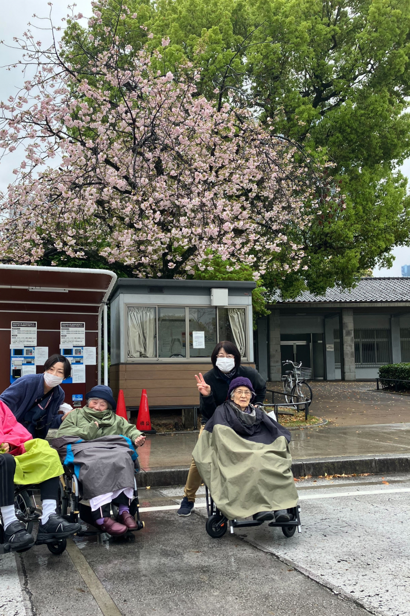 一瞬雨が止んだので、桜の前で写真を撮りました(^O^)