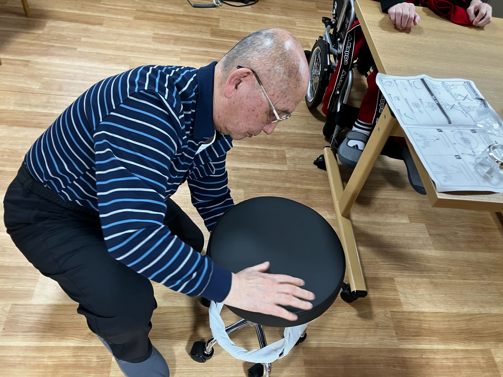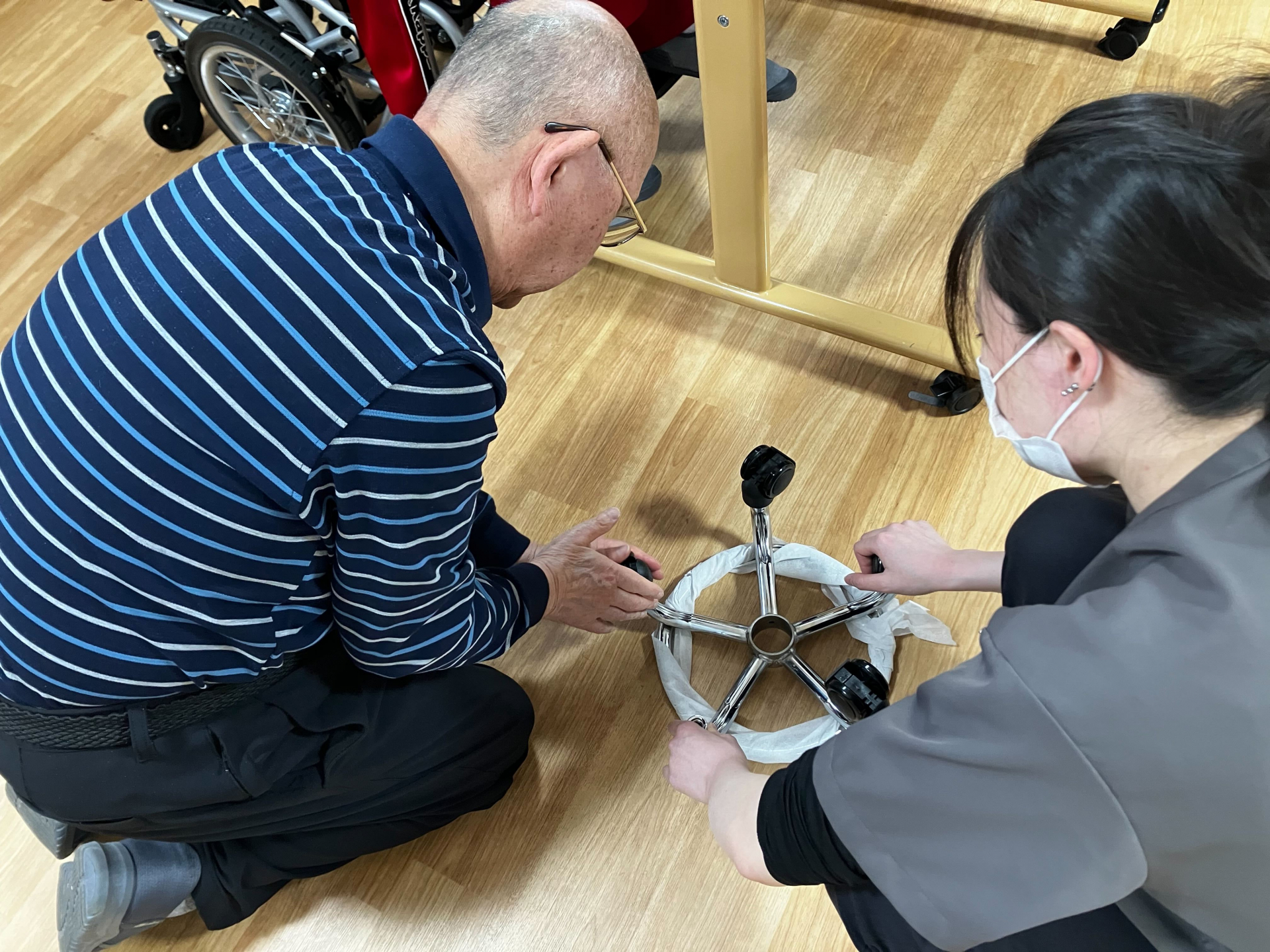 M様と高野看護師が椅子の組み立てをしています(^O^)
