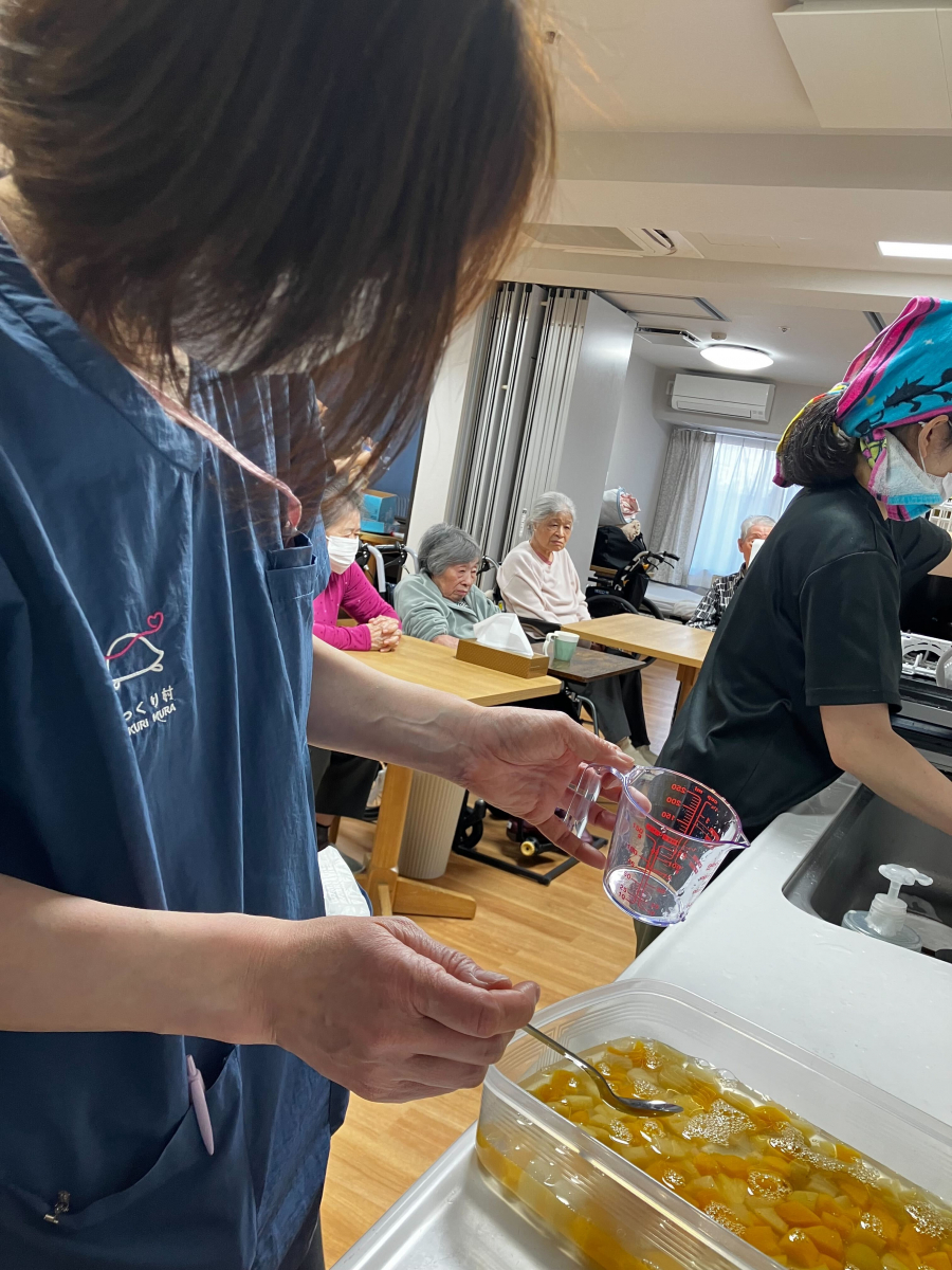 今日のおやつは村松看護師が作っておいてくれたフルーツゼリーです(^O^)