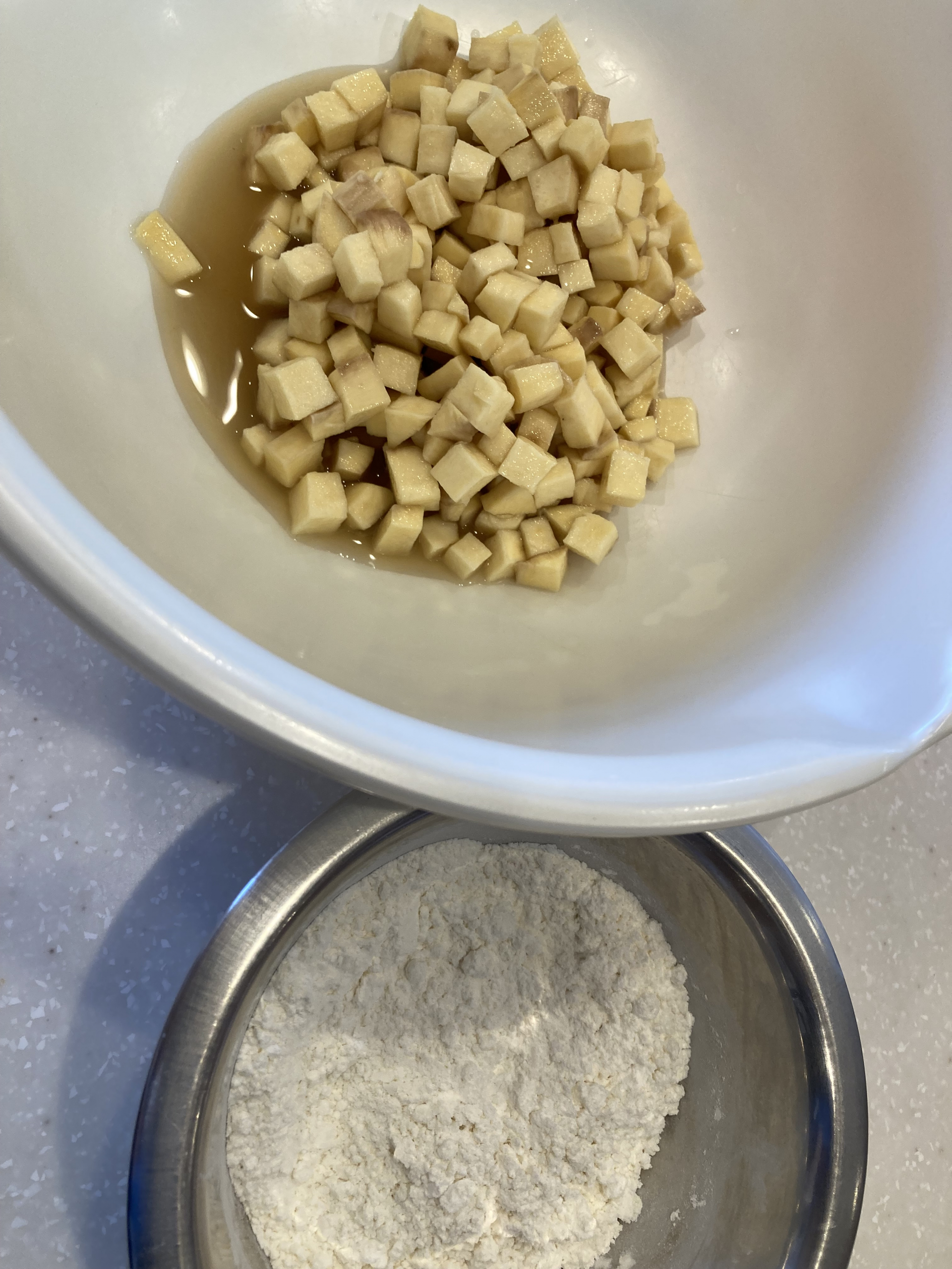 硬いさつまいもは慎重に行います、、きちんと綺麗に切ってしてくださいました(^^)/