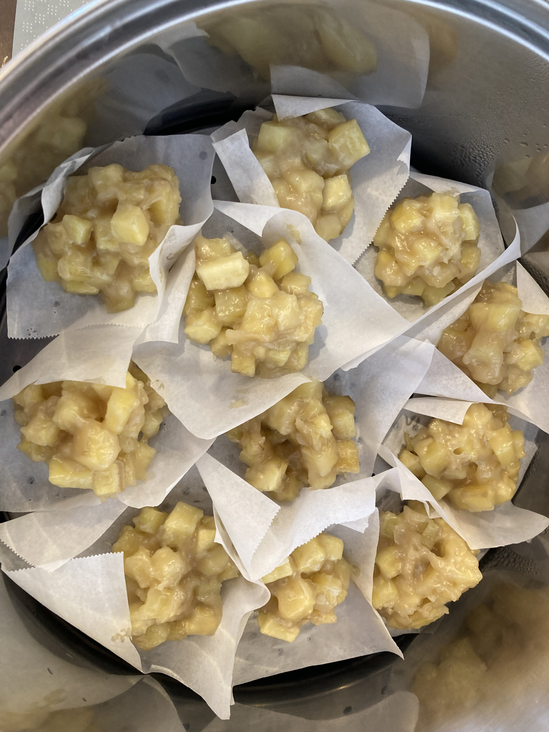 鬼饅頭というと怖いですが、さつまいもを細かくしてお粉で丸め蒸したヘルシーなお饅頭になります