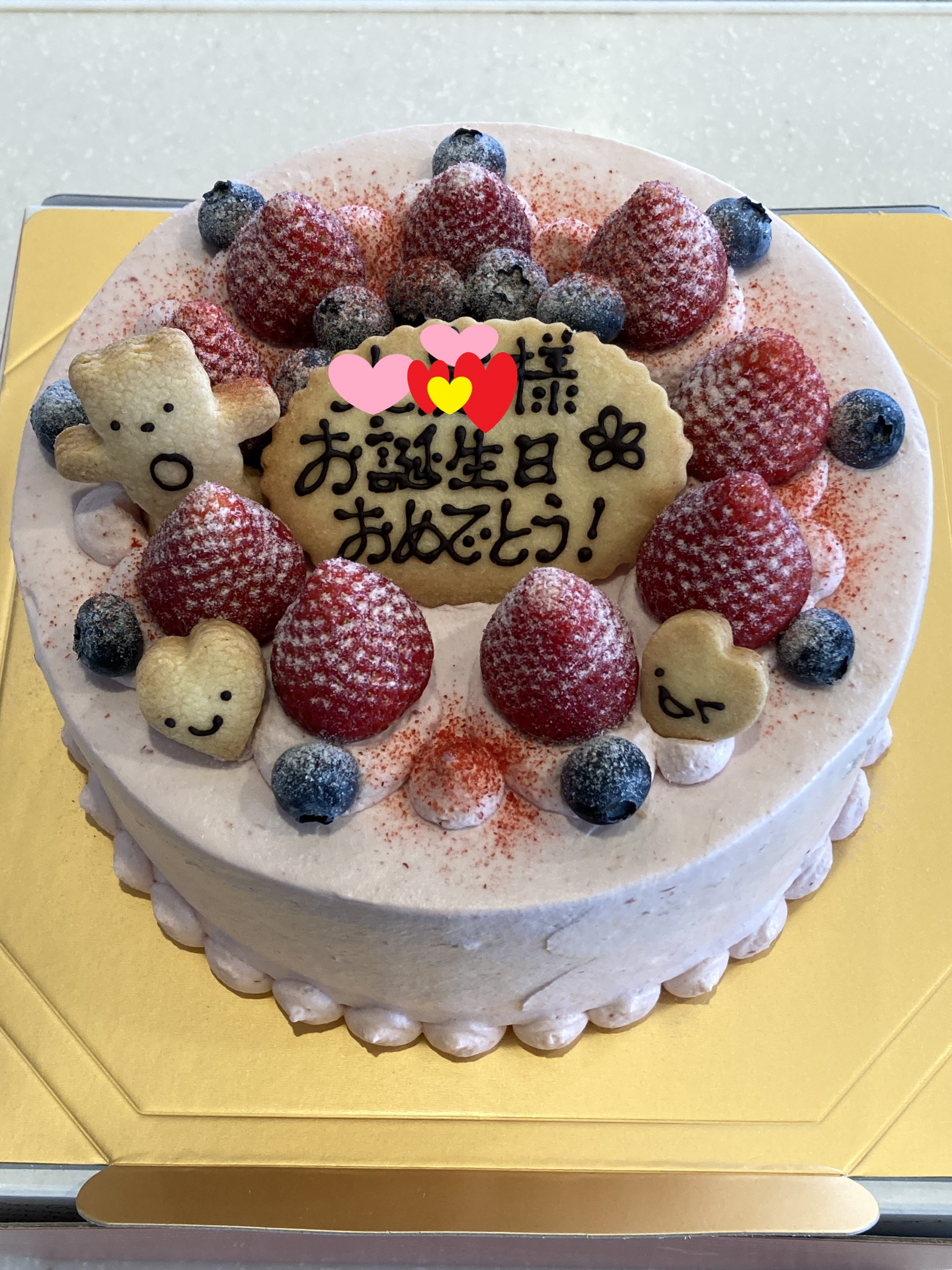 お誕生日を迎え苺ケーキを用意しました!おいしそうですね~ (๑ᵔᗜᵔ๑)