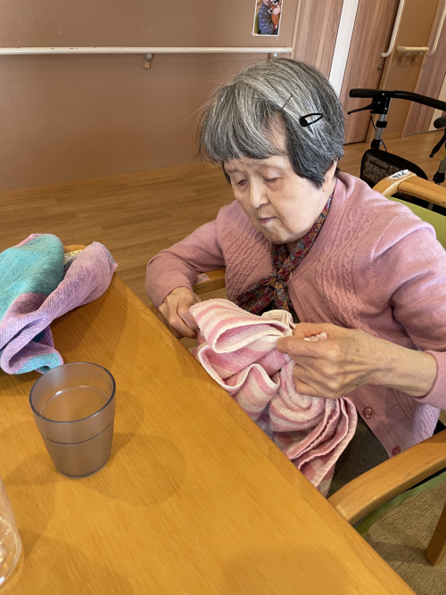 皆様タオル畳されている時は寡黙にな真剣にしてくださっております