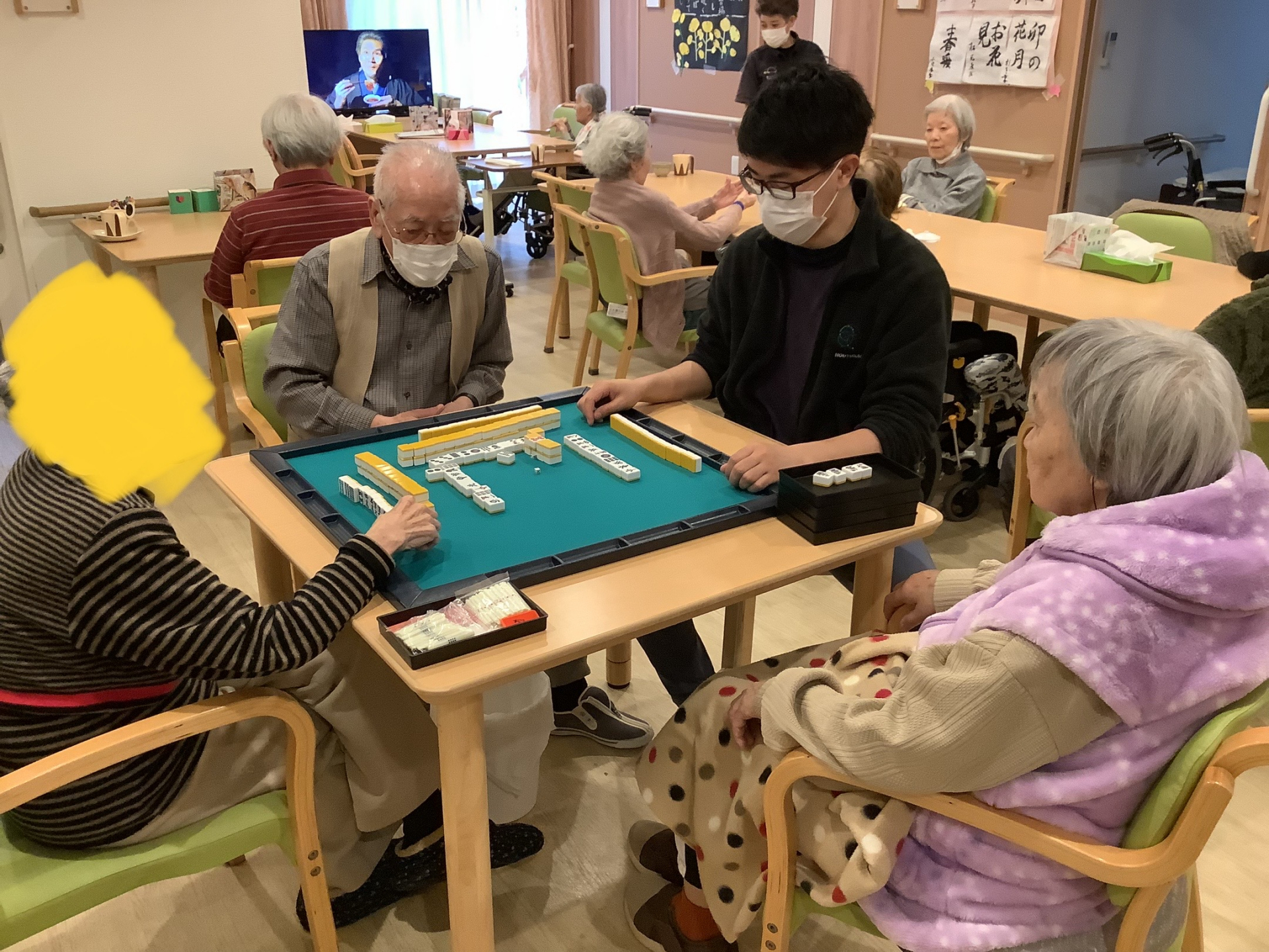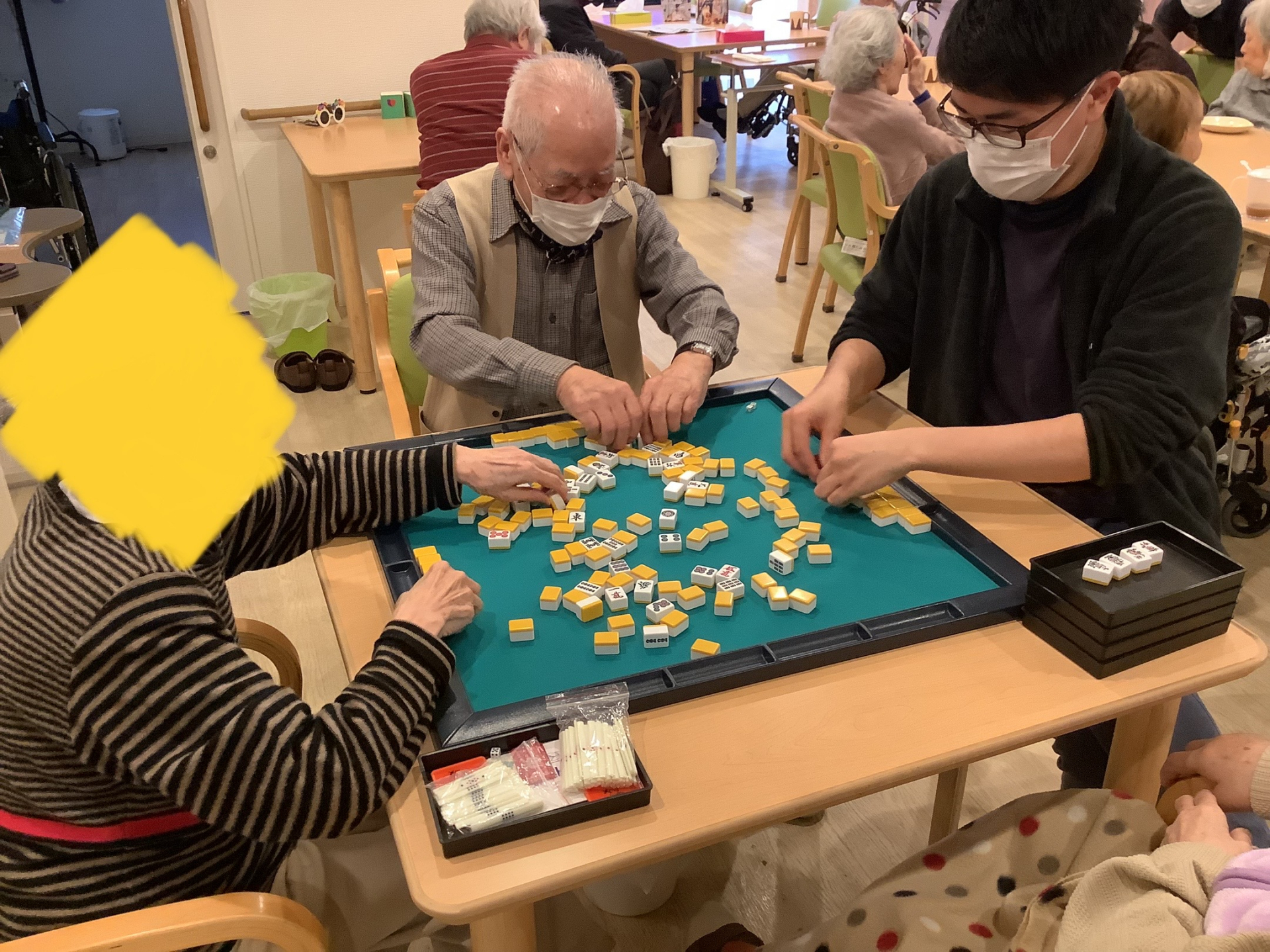 利用者様と職員、ボランティアの方の数名が、麻雀が得意と判明して