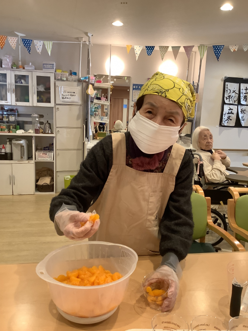 前回に引き続き、季節のおやつ「みかん牛乳寒天」作りのご様子です!