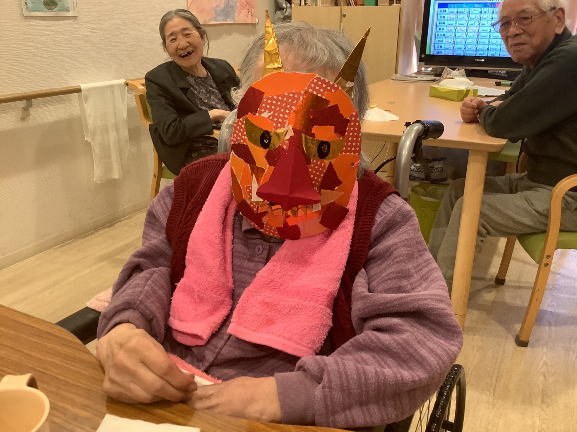 節分では、皆さまで鬼のお面を作りました!