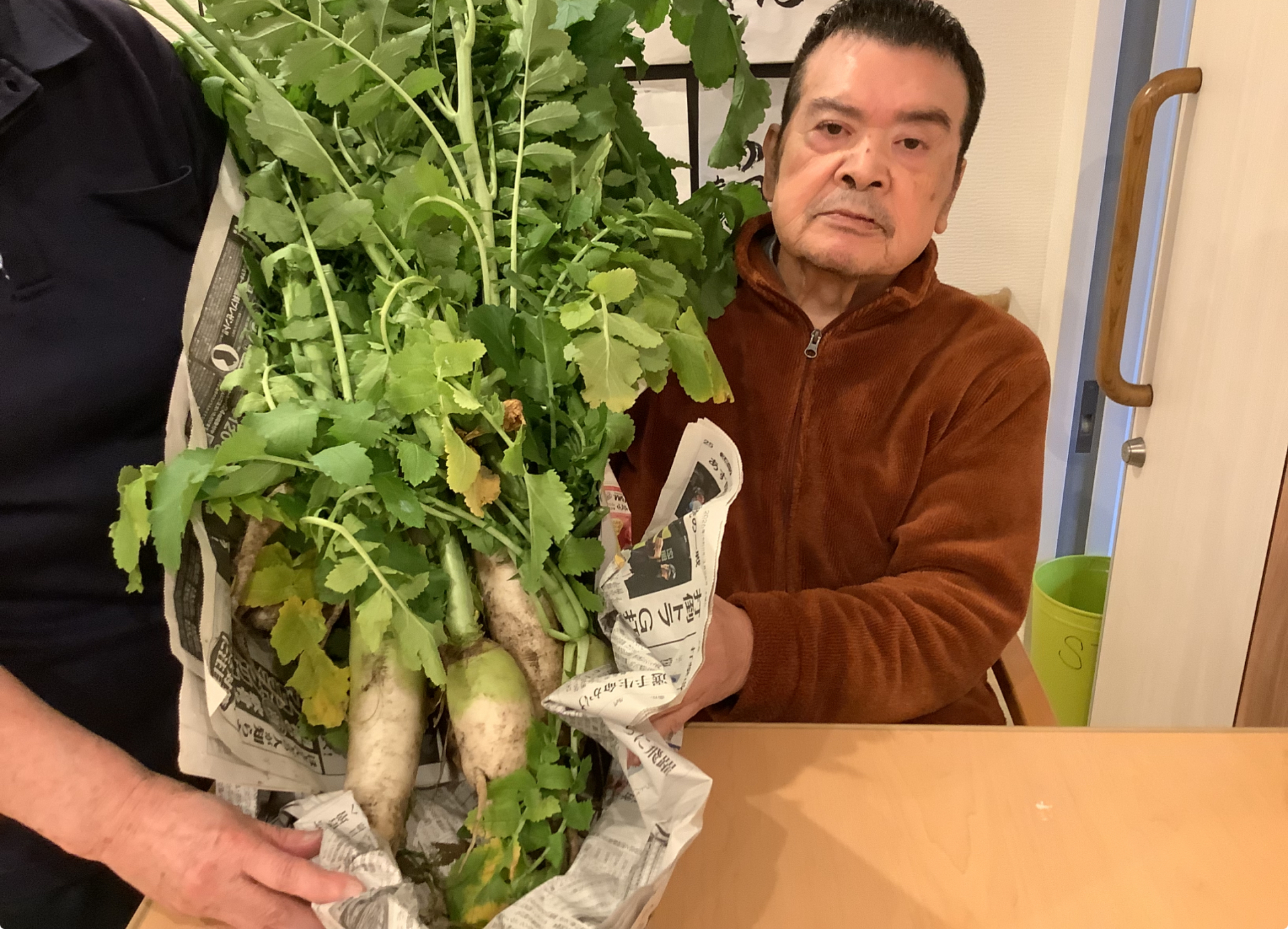 今日はお天気が良くて中庭に出て畑で収穫をしました(^^)