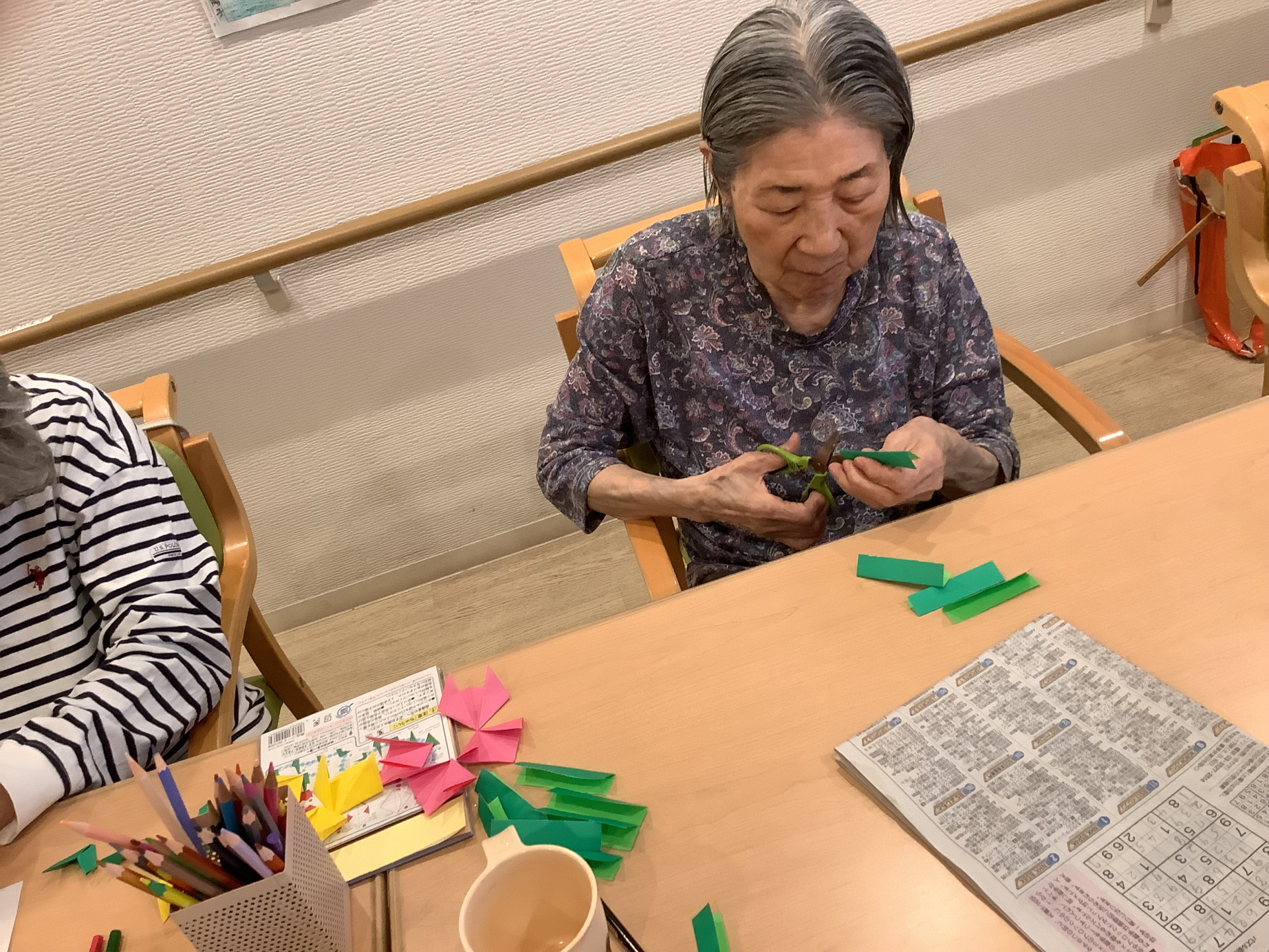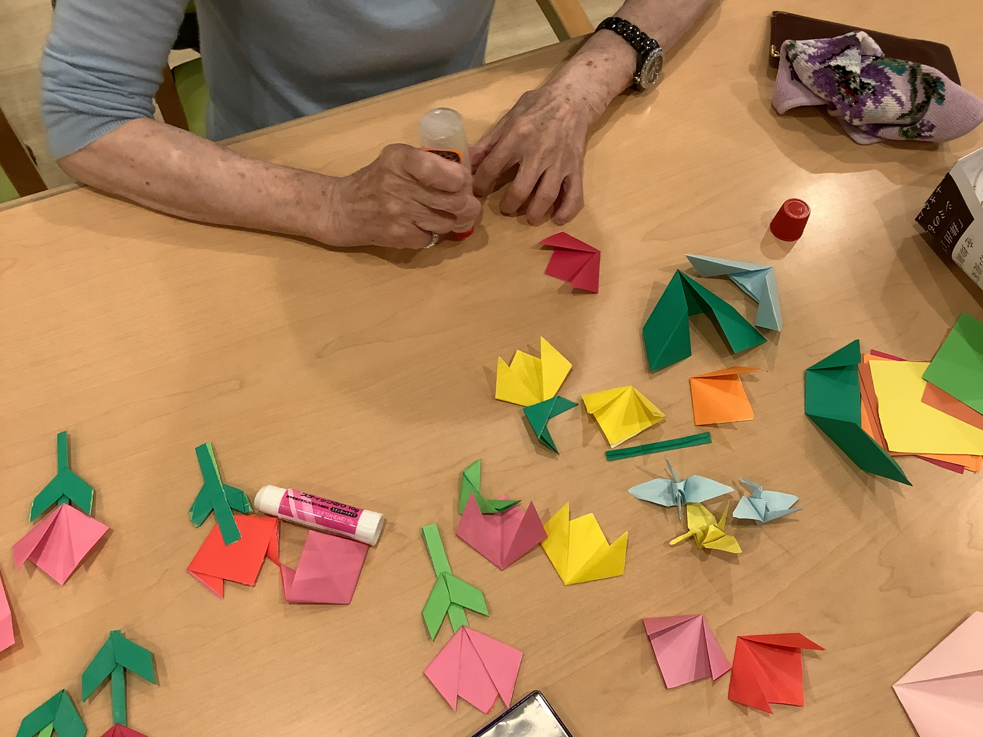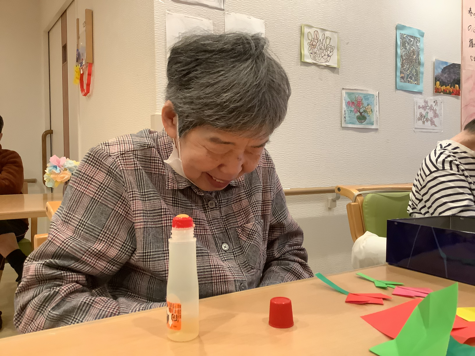 体操をしたり、塗り絵をしたり、折り紙をしたり・・・