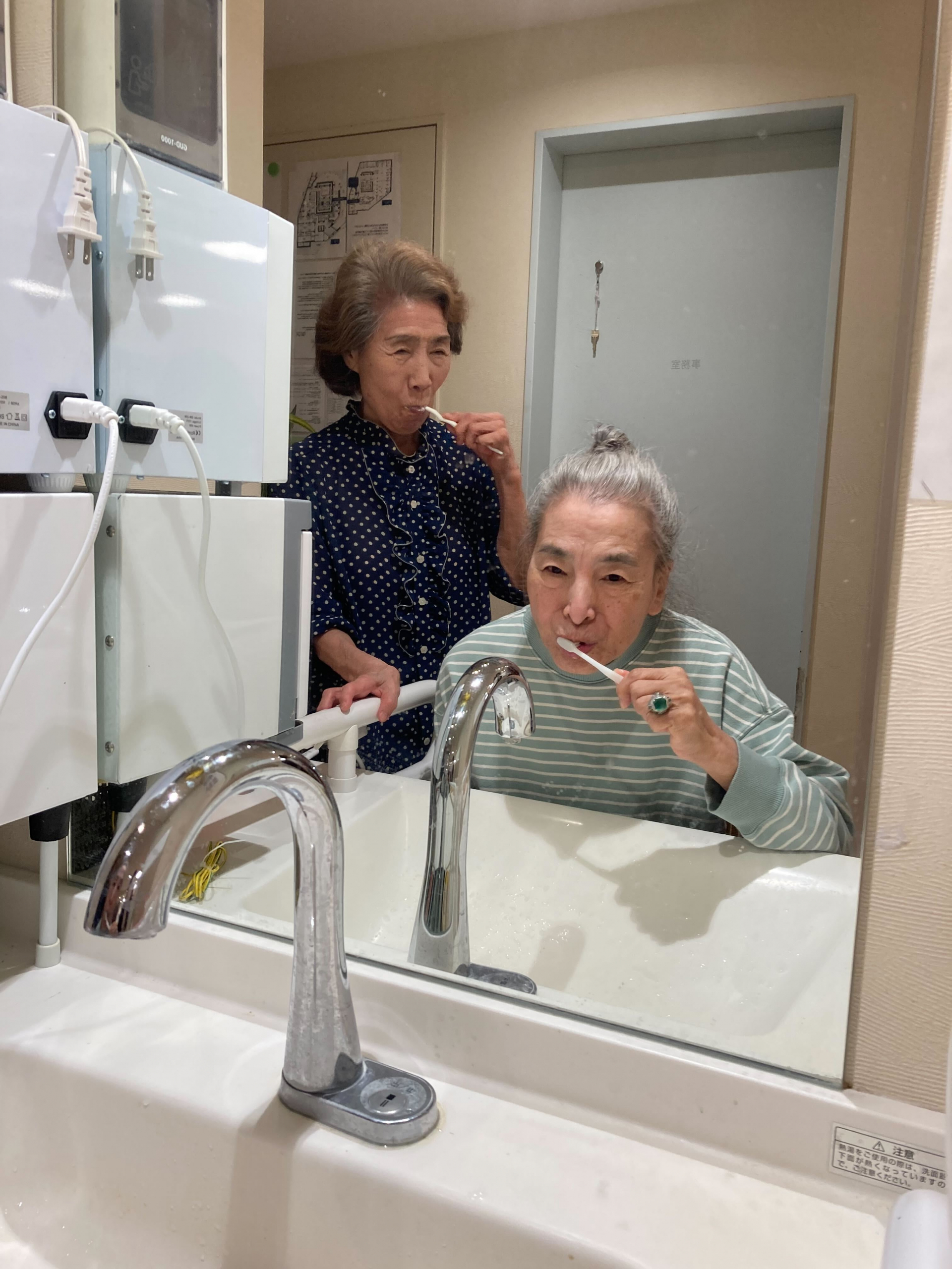 2024.10.26 活動報告 歯磨きのお時間です♪ Tweet シェアする こんばんは 本日は歯磨き(口腔ケア)シーンを撮影させていただきました。 E様とT様が仲良く行なっています。 お二人とも本日はお泊りなので少しワクワク気分かも?(^^ 安齋 前の記事 2024.10.28 活動報告 タオル畳み 次の記事 2024.10.26 活動報告 食器洗い 一覧へ戻る