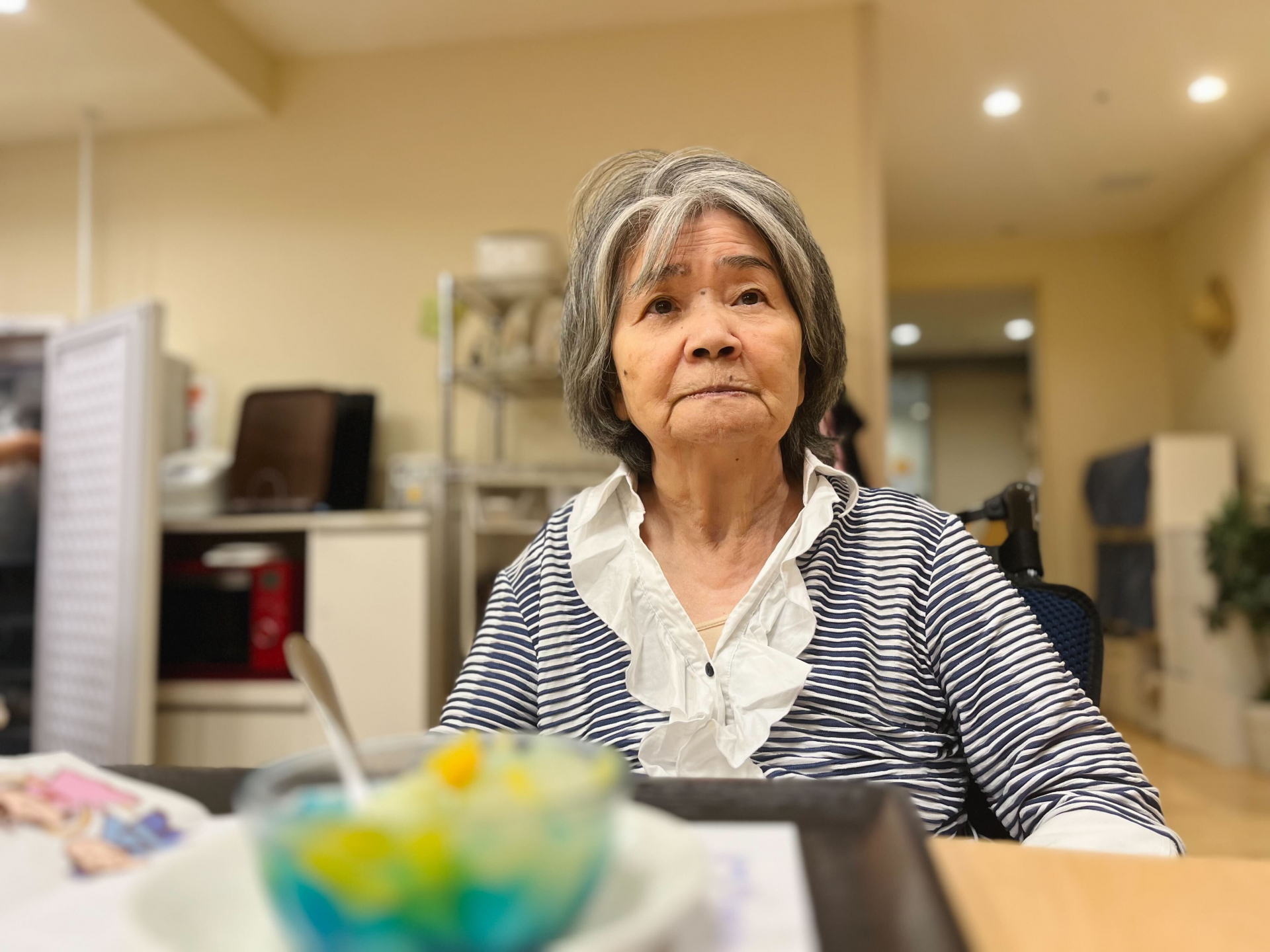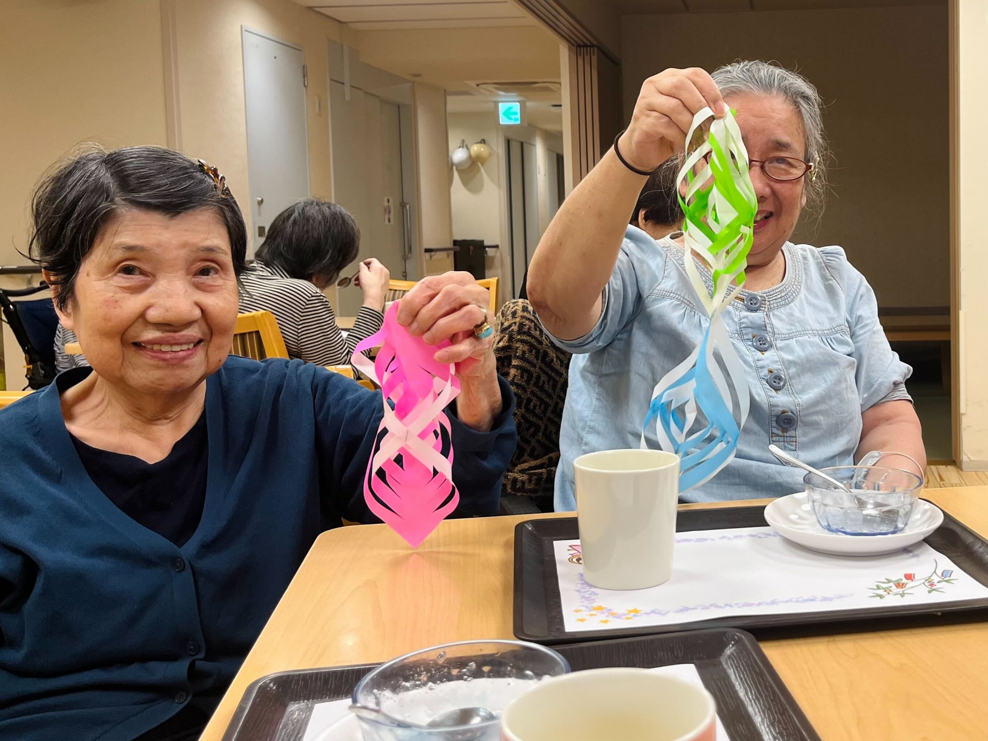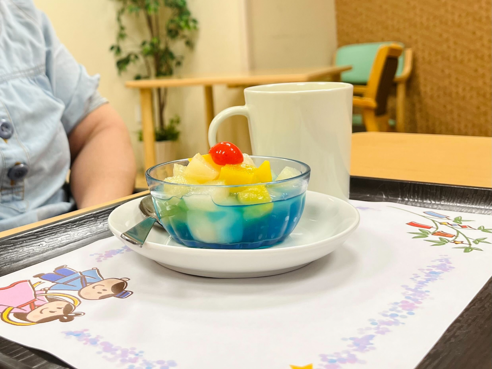 色とりどりのゼリーを前に、利用者様からは「綺麗ね~!」「食べるのがもったいないわ!」