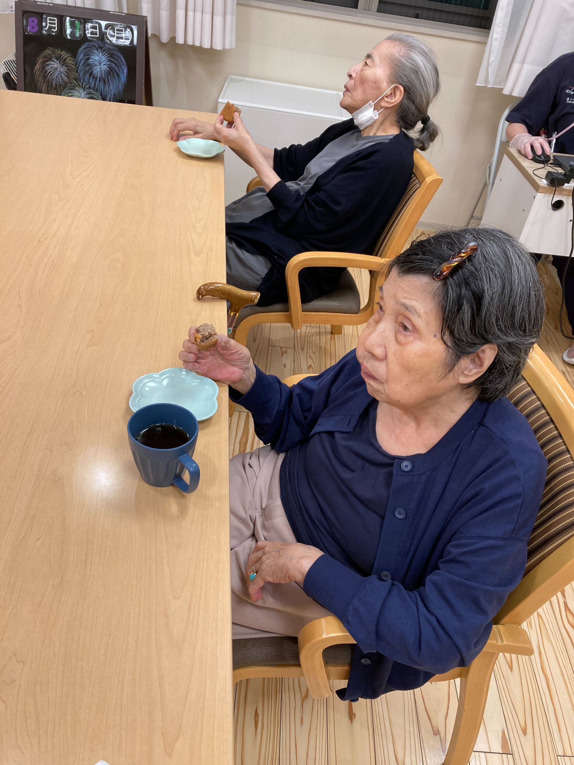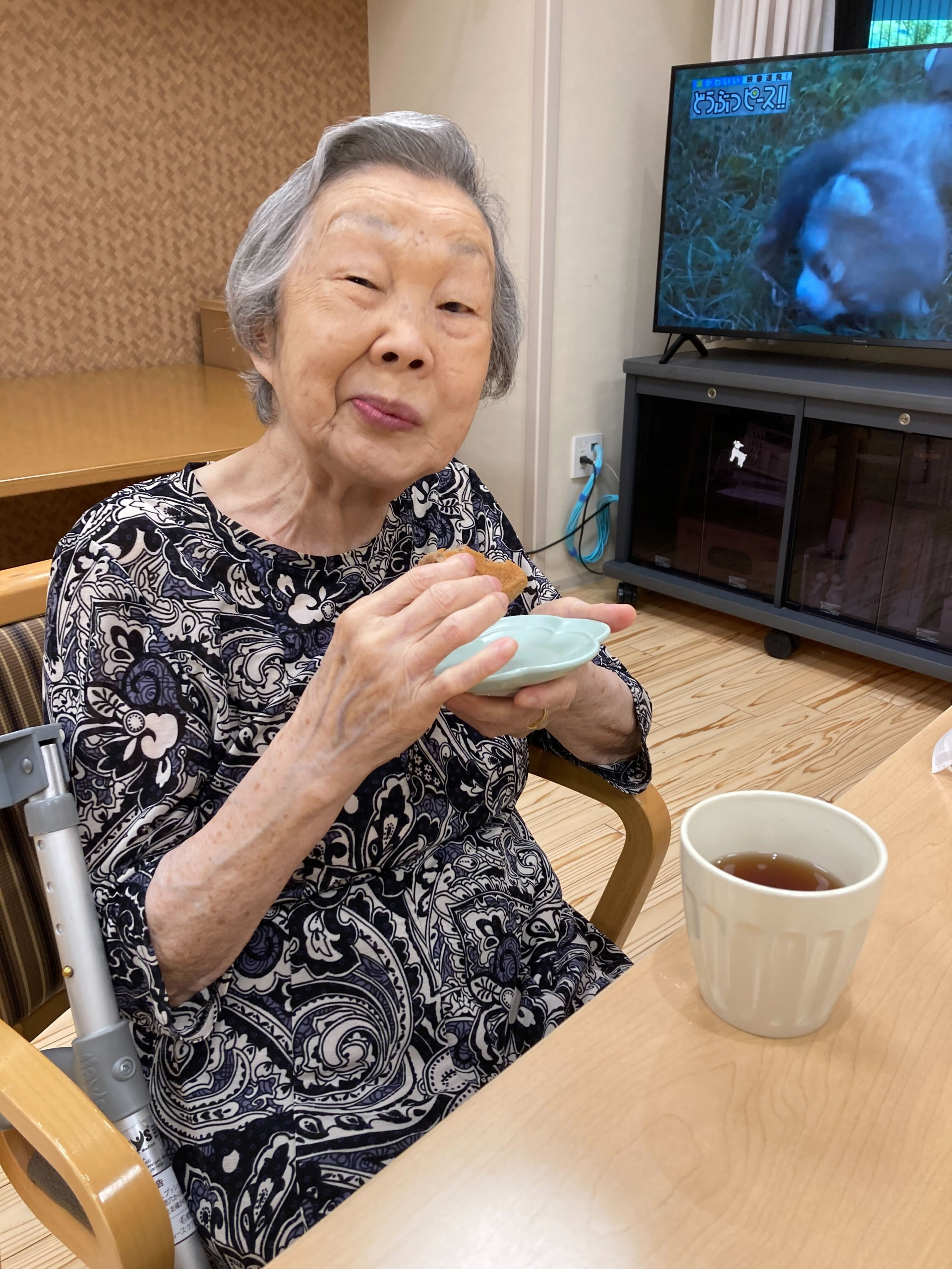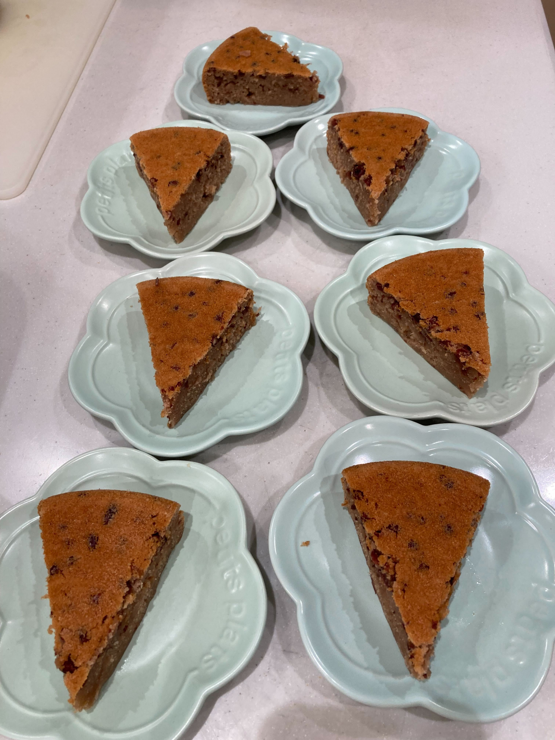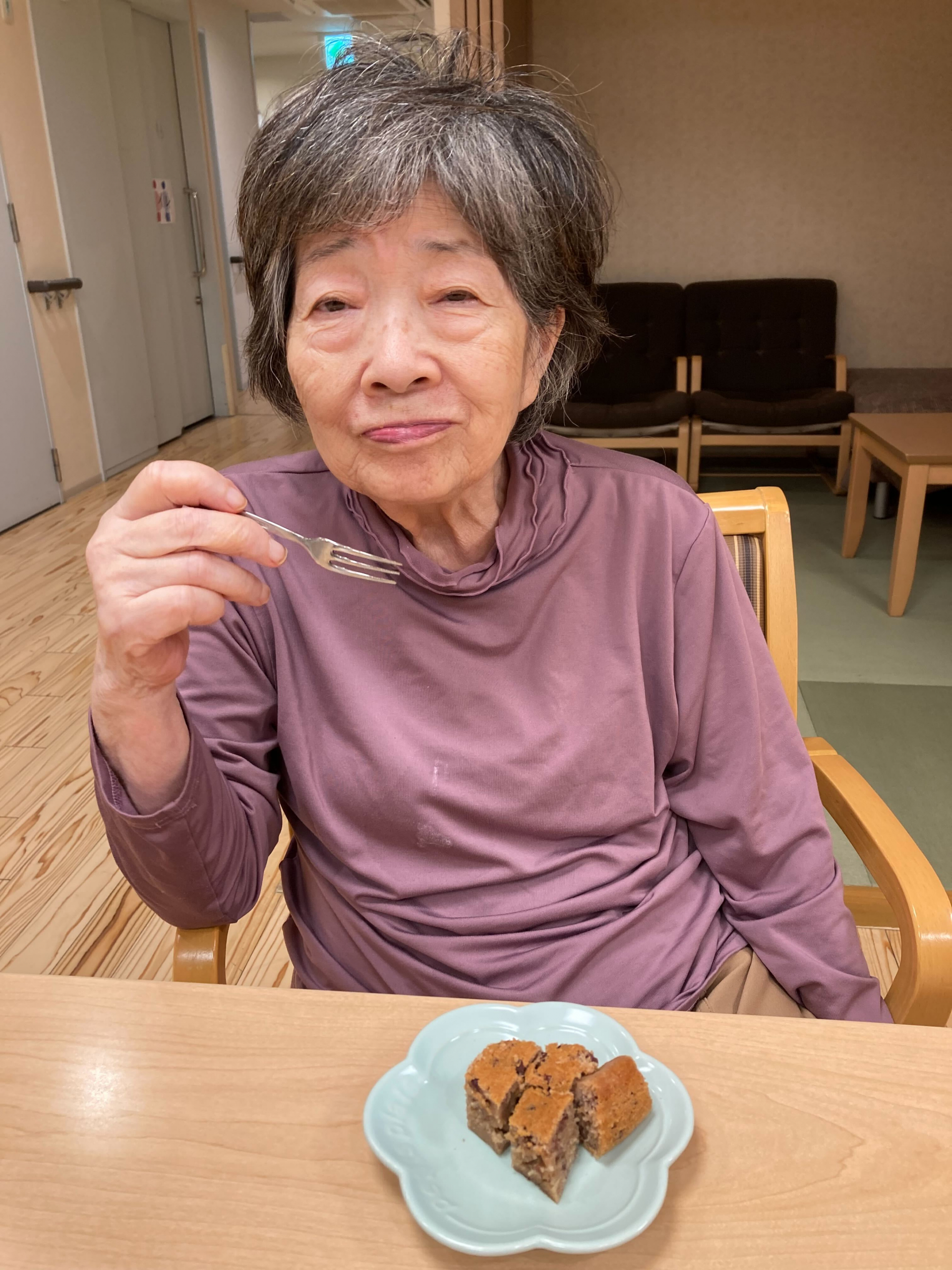 本日のおやつは、職員手作りの小豆シフォンケーキをご用意いたしました。