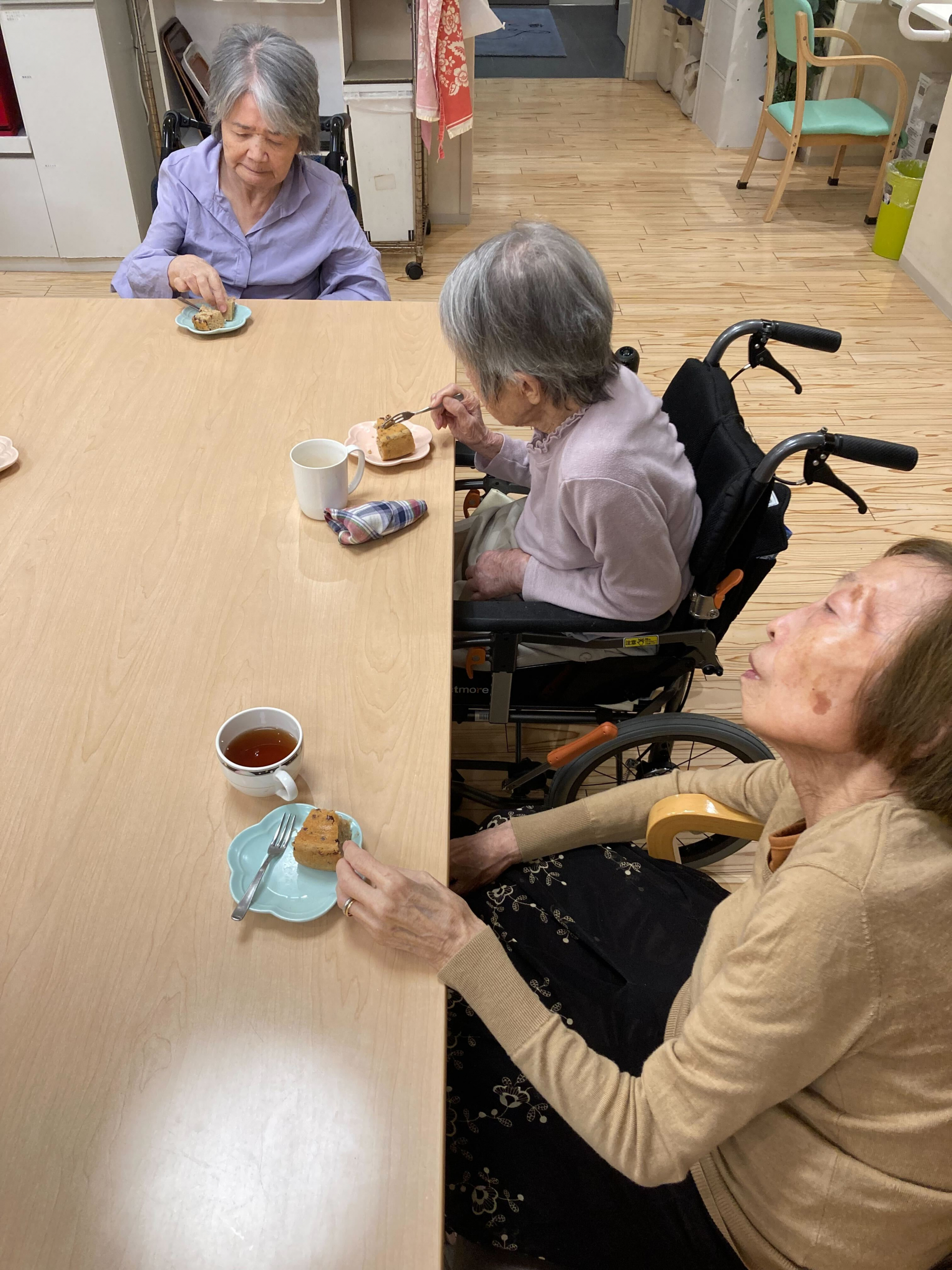 本日のおやつは、職員の手作りの小豆ケーキでした。