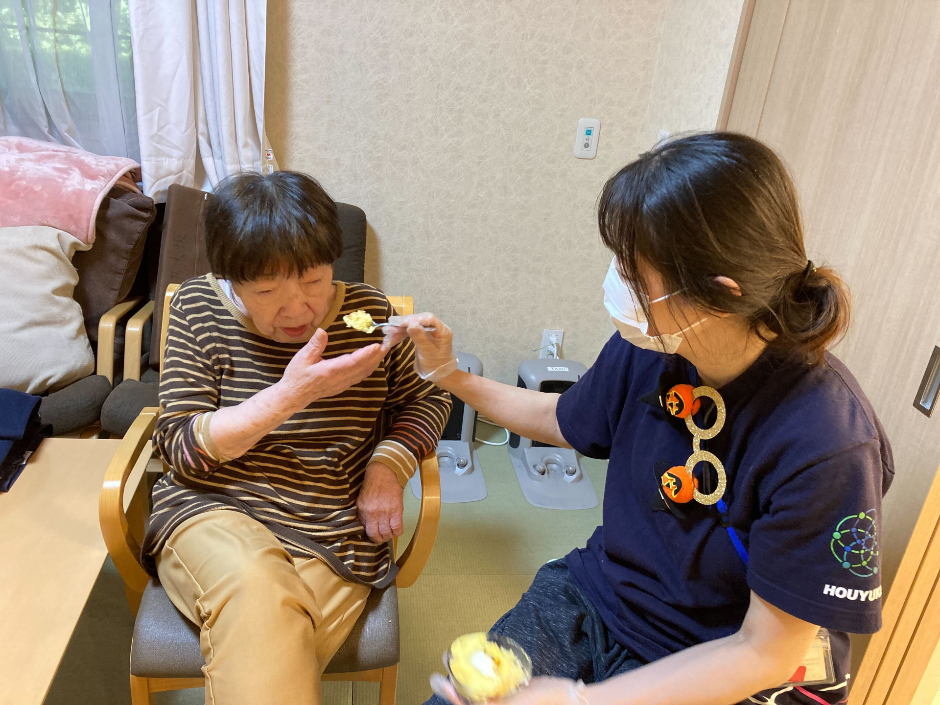 本日のおやつは、スタッフ手作りのさつまいもケーキでした。