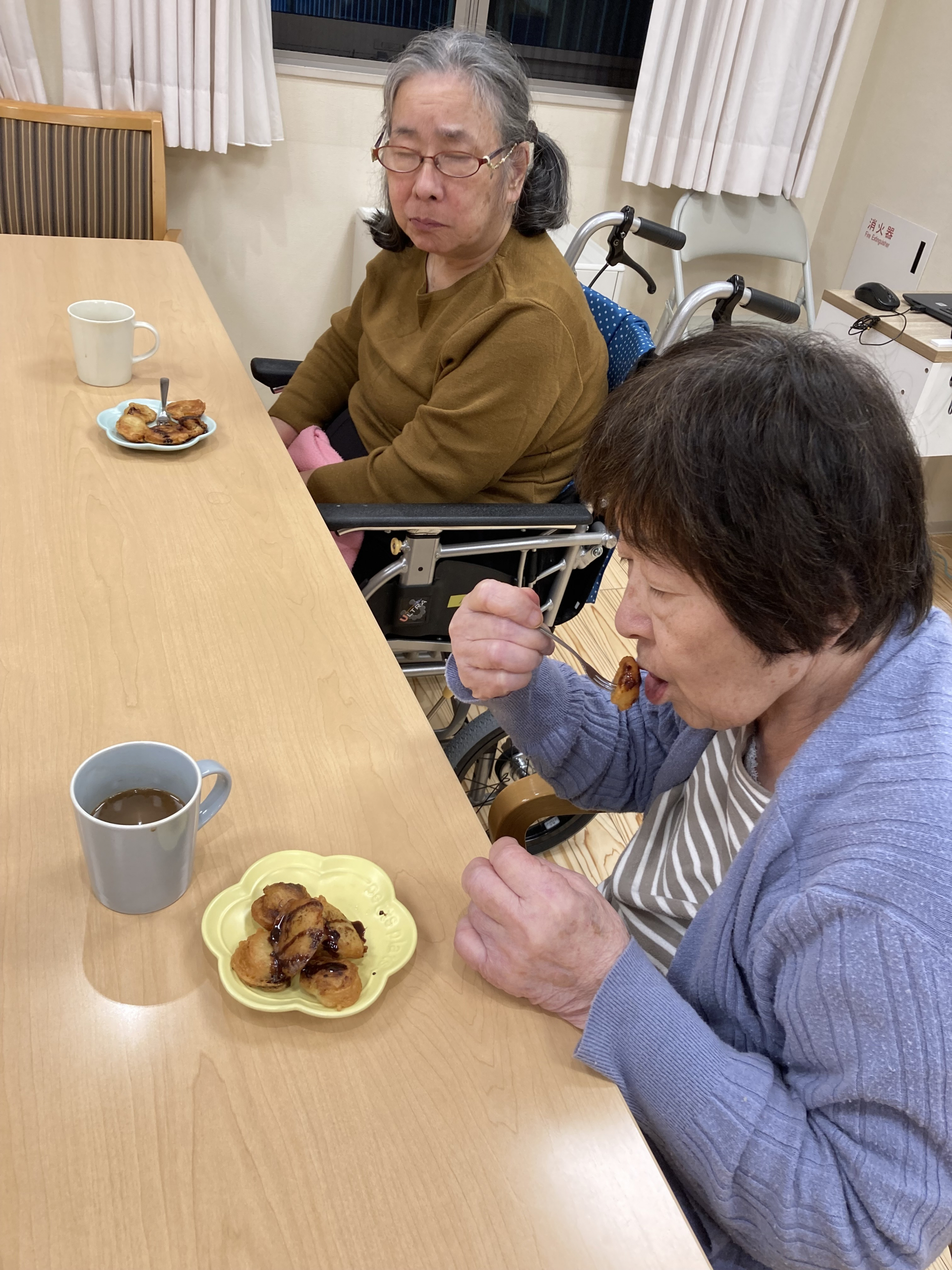 本日のおやつは、インドネシア出身のスタッフが手作りした「ピサンゴレン(揚げバナナ)」でした。