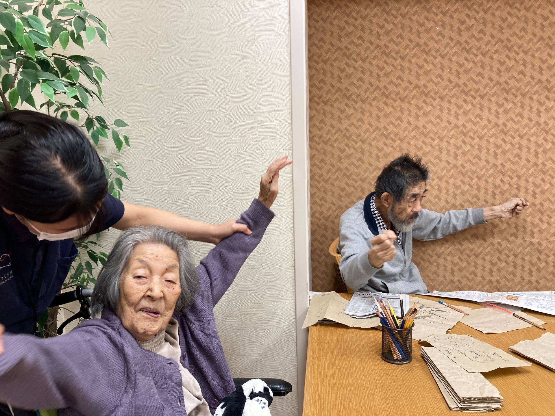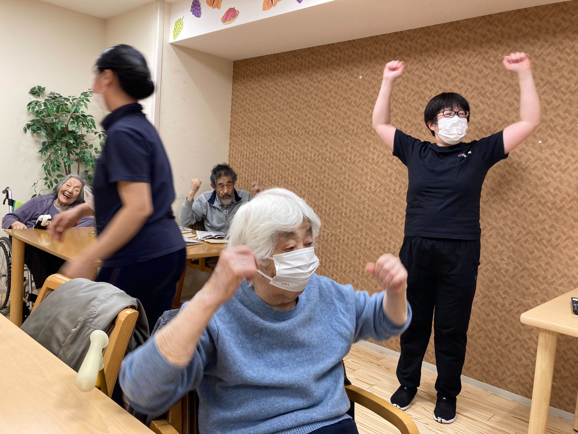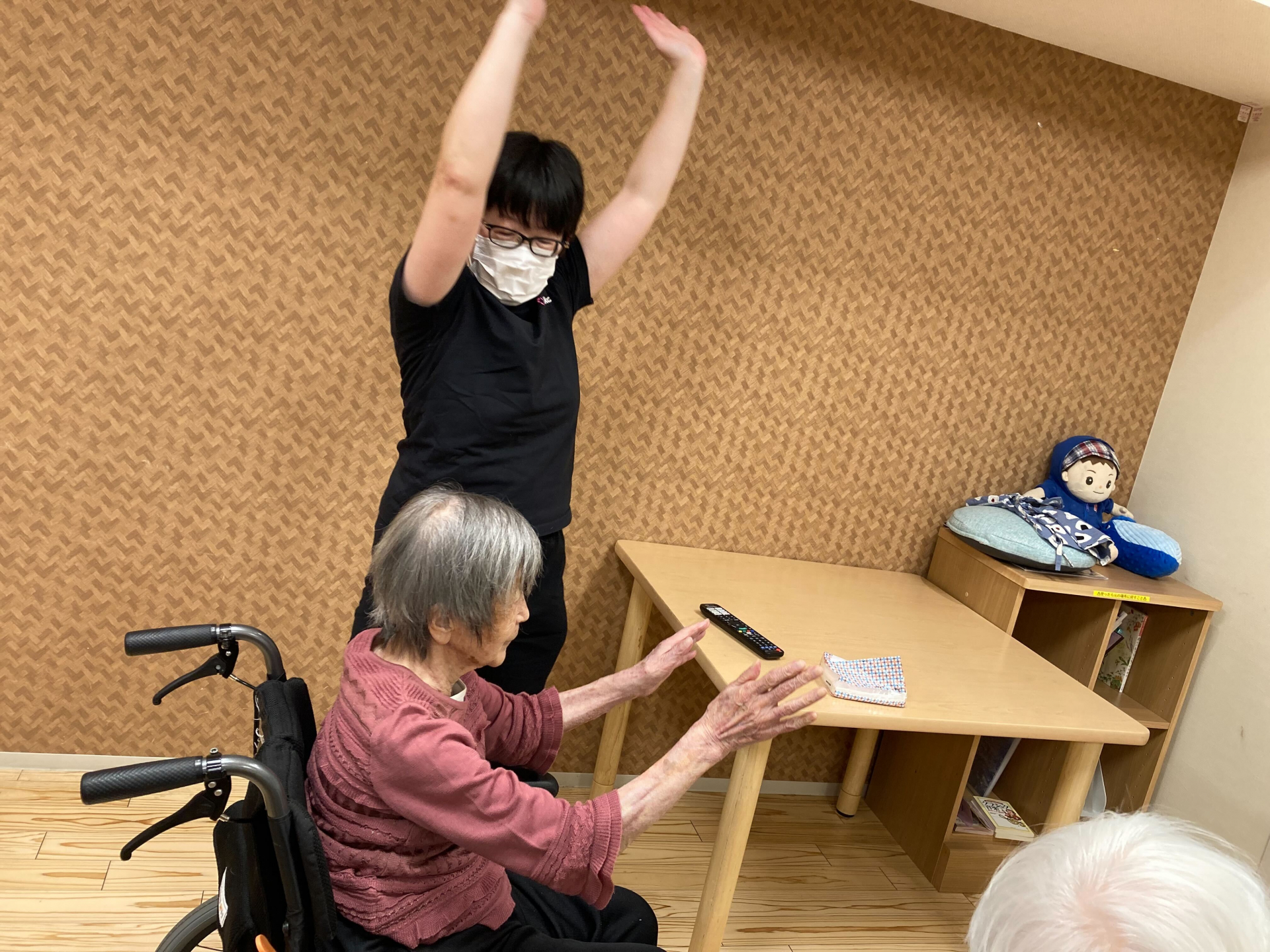 本日の午後、利用者様とご一緒に「ラジオ体操第二」ならびに「5分間のテレビ体操」を行いました。