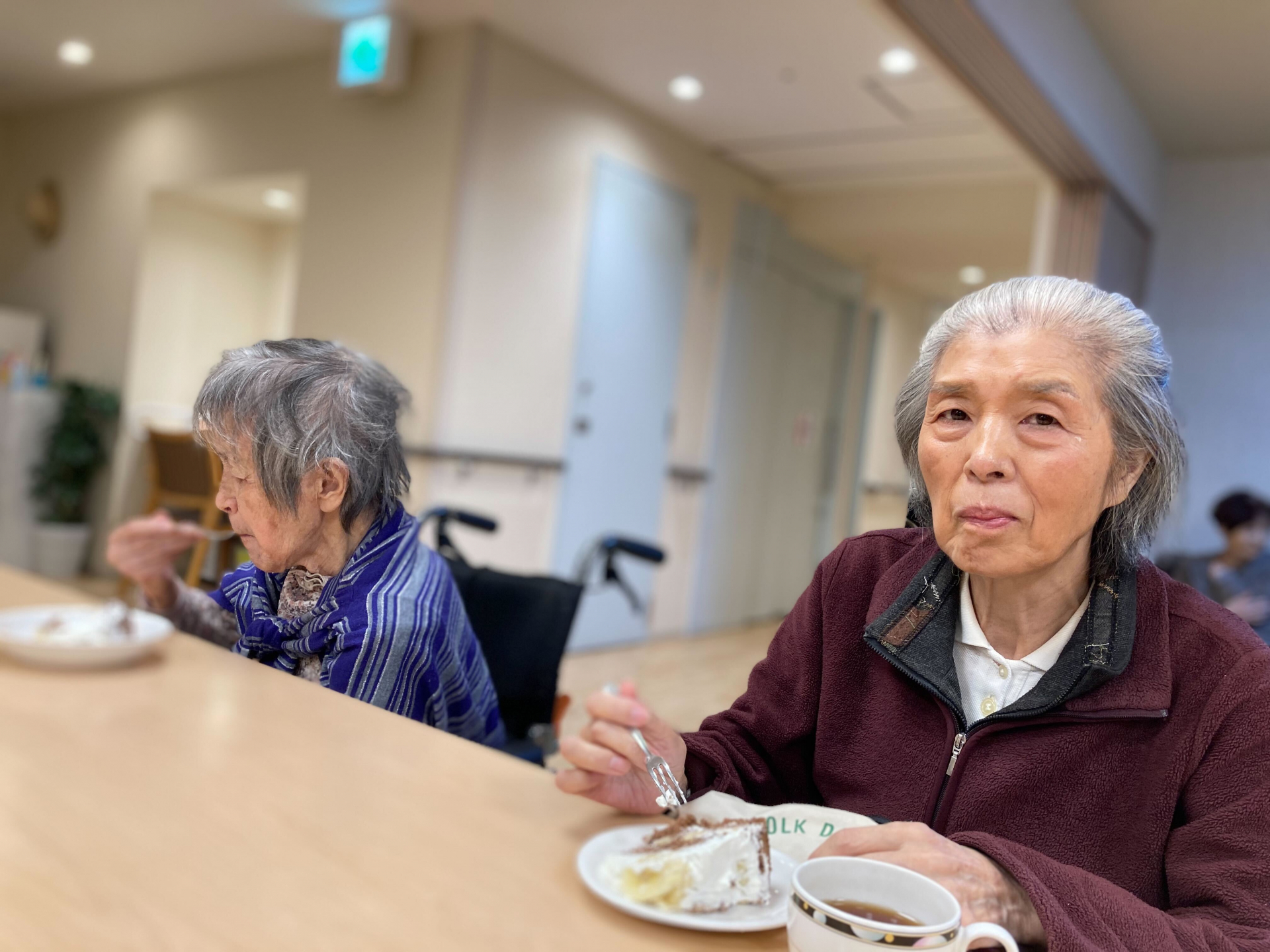 スタッフ手作りのケーキ皆様と一緒に楽しみながら、温かい雰囲気の中でお祝いしました。