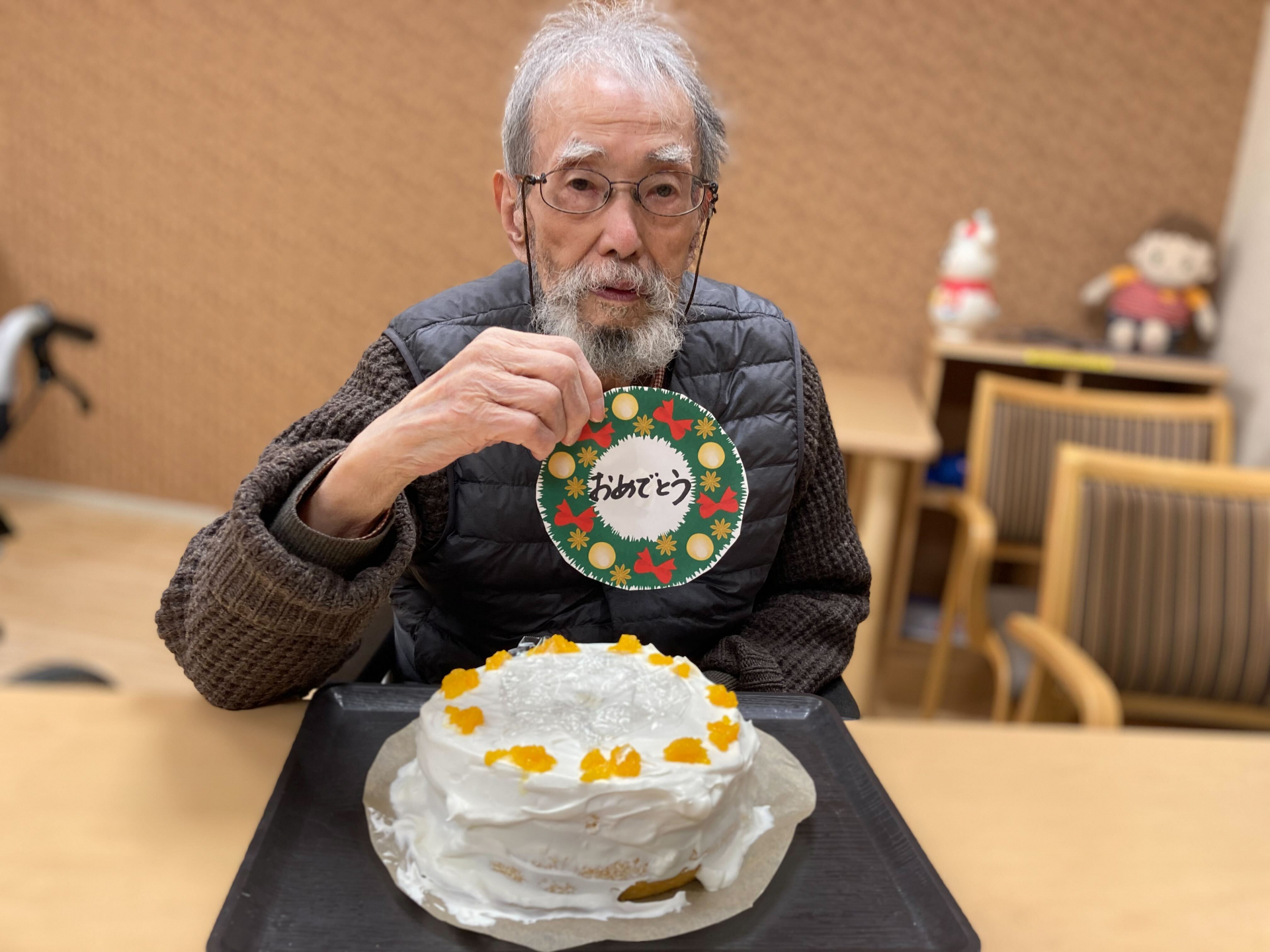 本日はM様のお誕生日のお祝いとして、おやつの時間にバースデーケーキをご用意しました。