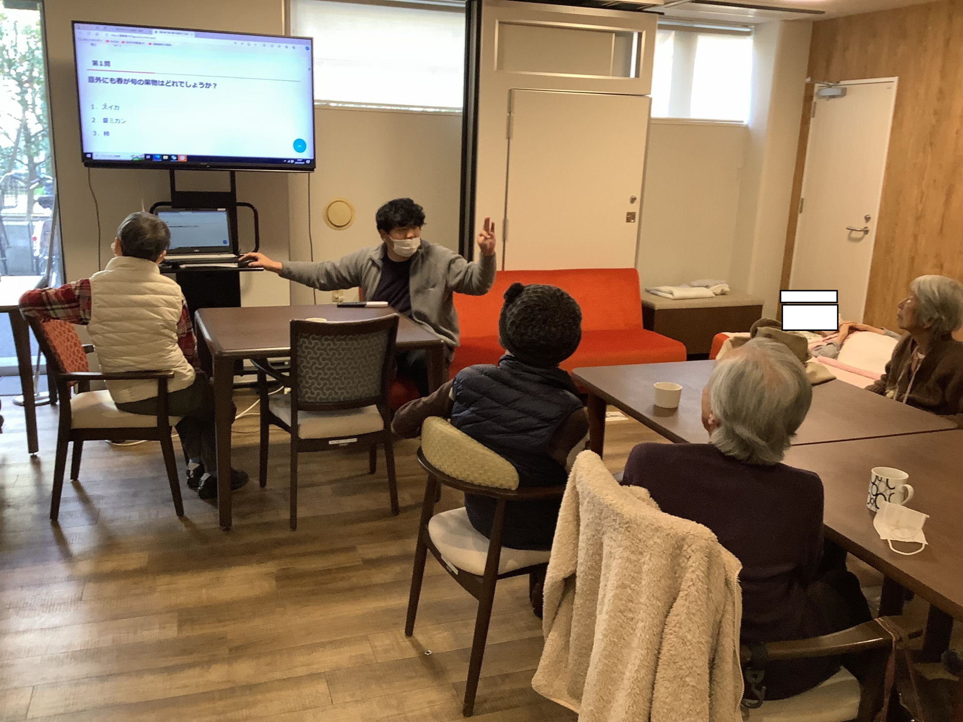 2024.03.04 活動報告 季節の味覚クイズ Tweet シェアする 本日は皆様が季節の味覚クイズを参加しております。 ゴーテイモ 前の記事 2024.03.05 活動報告 ひな祭り 次の記事 2024.03.02 活動報告 ちらし寿司 一覧へ戻る