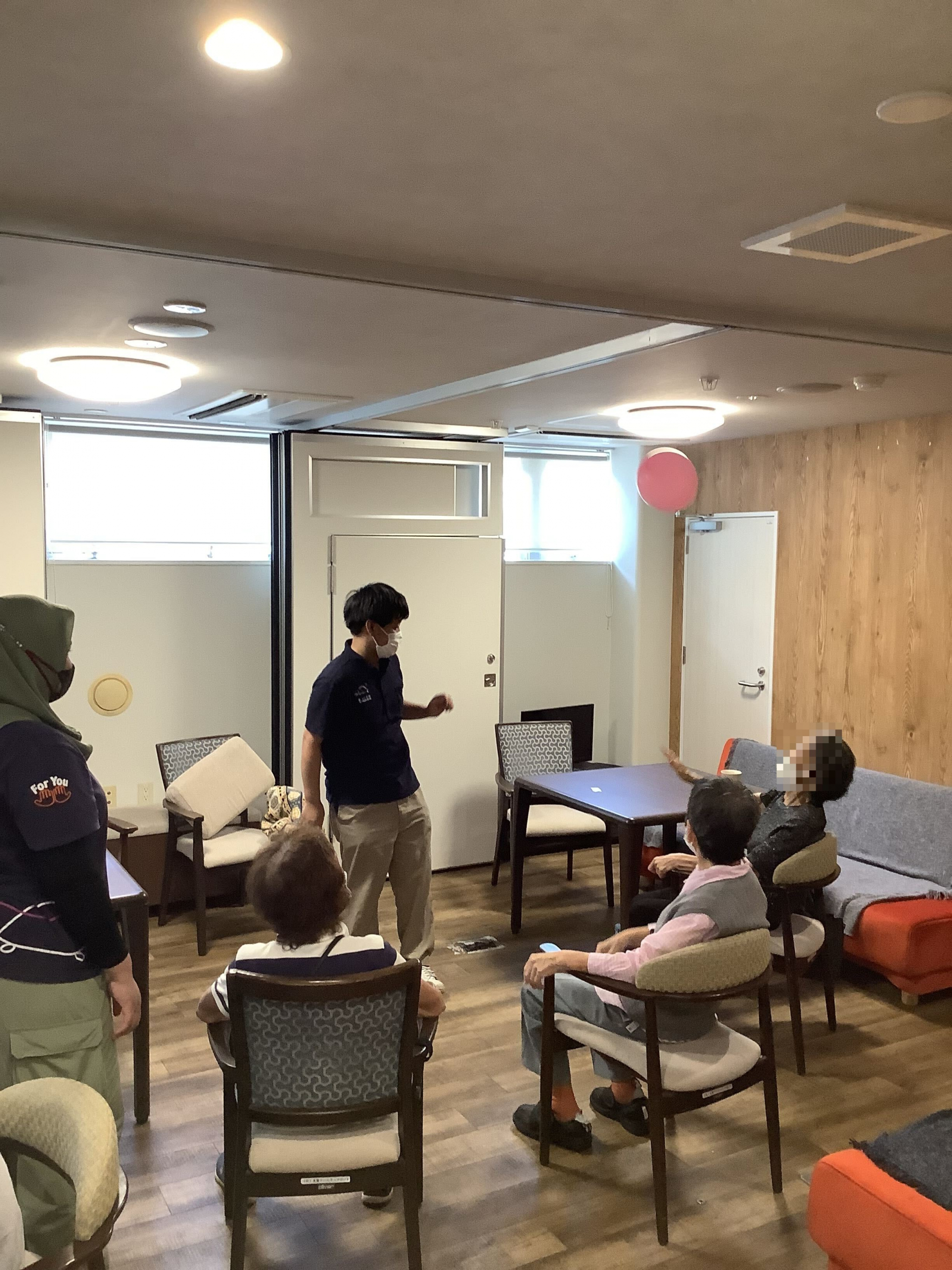 そんなわけで風船を用いた上半身運動をレクリエーションで行いました!