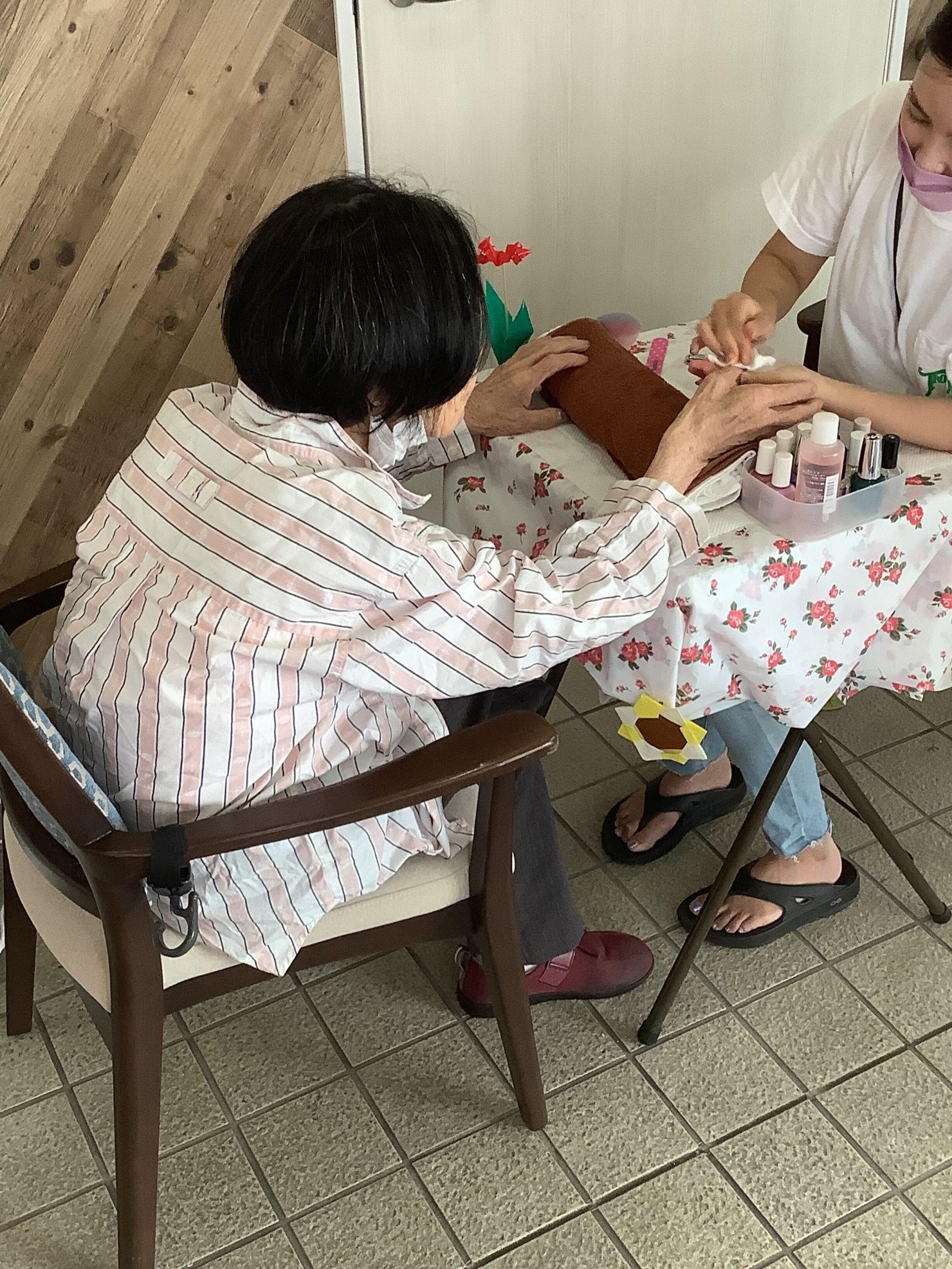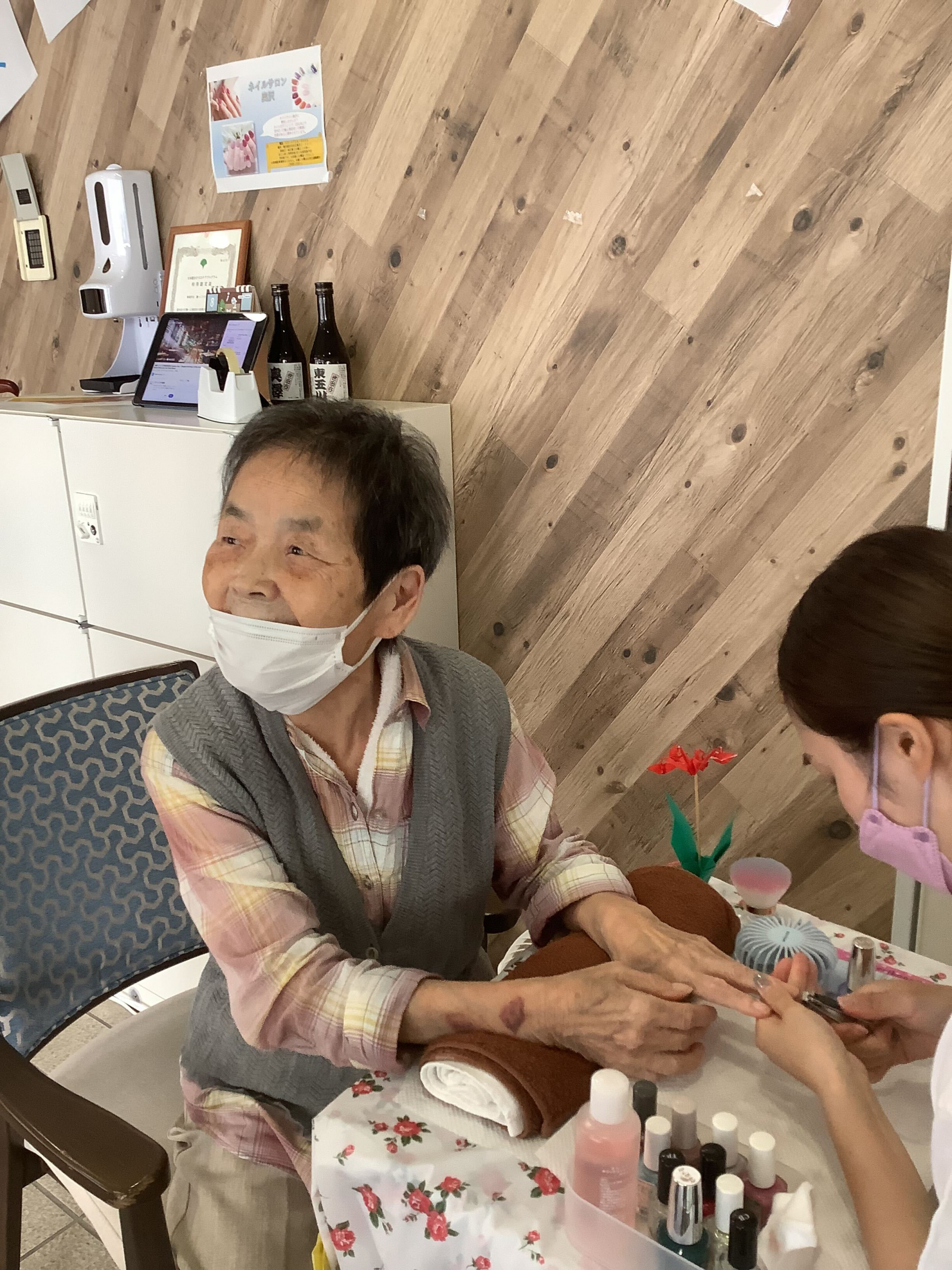 塗った後は利用者様同士で見せ合いっこや爪について語り合われていました!