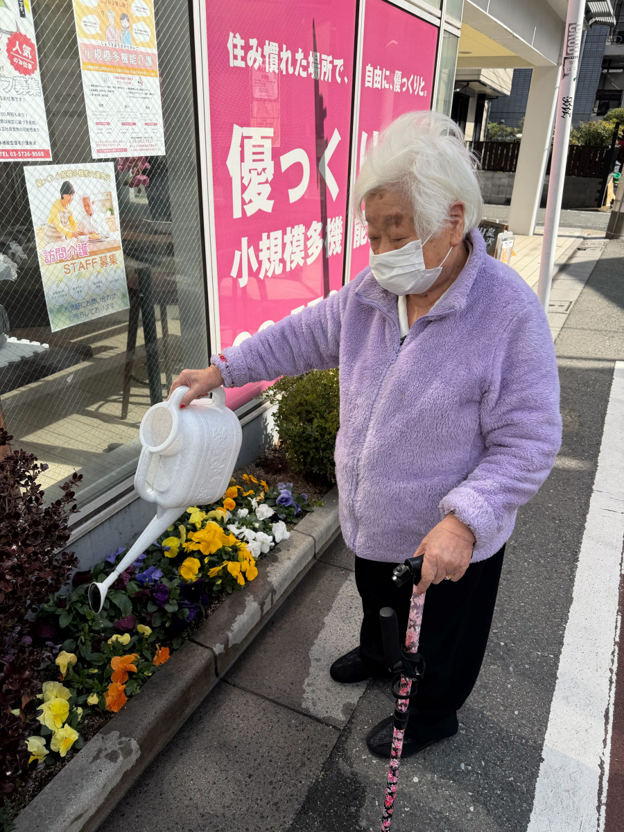 お水やりをして頂いてお花もご利用者様も笑顔になっていると思います(*^▽^*)/