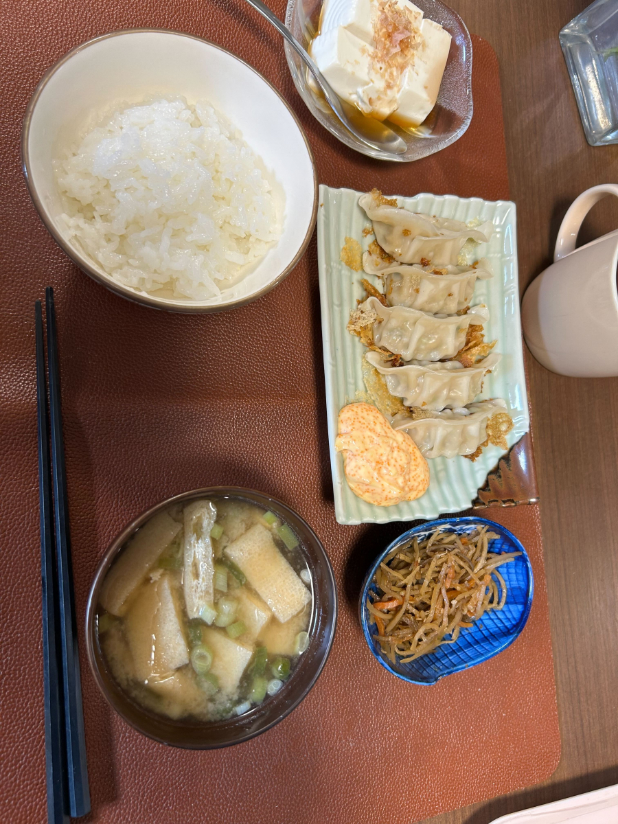 『餃子・きんぴらごぼう・温奴・揚げと葱の味噌汁』でした!