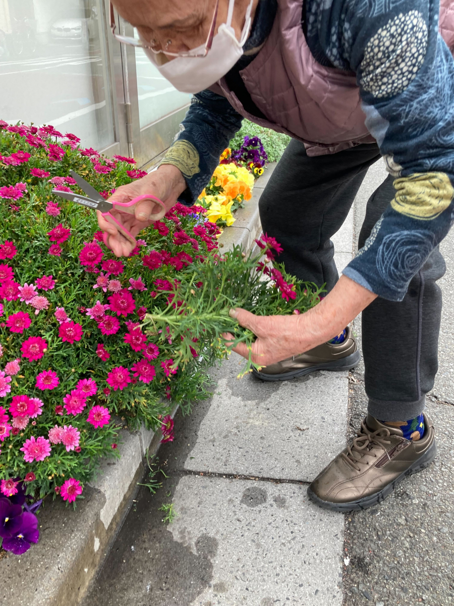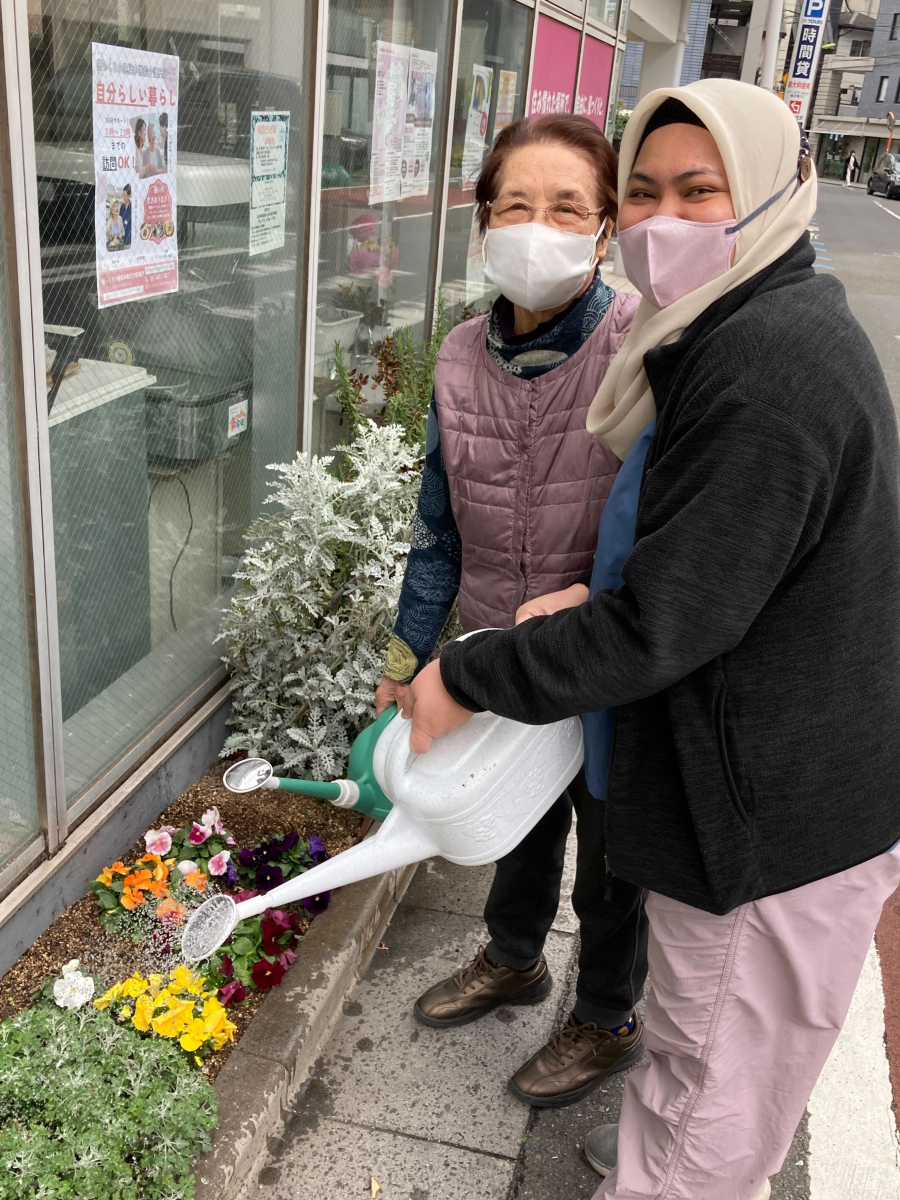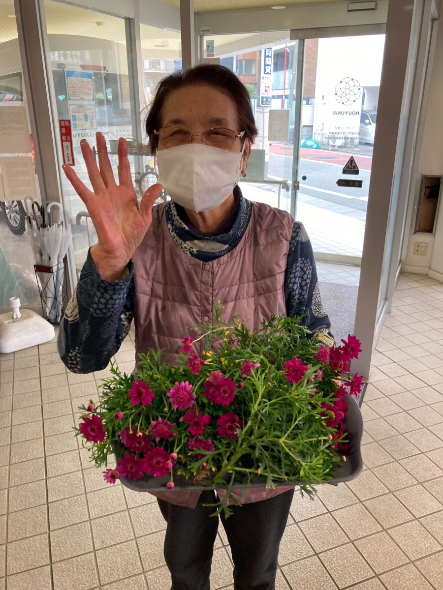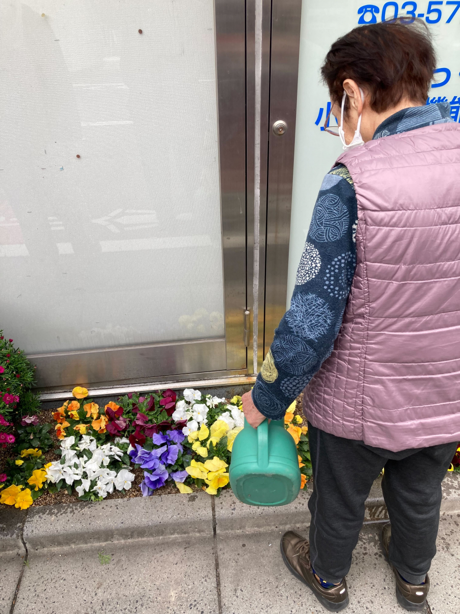 ご利用者様が花壇の水やりをされておりました(^^♪