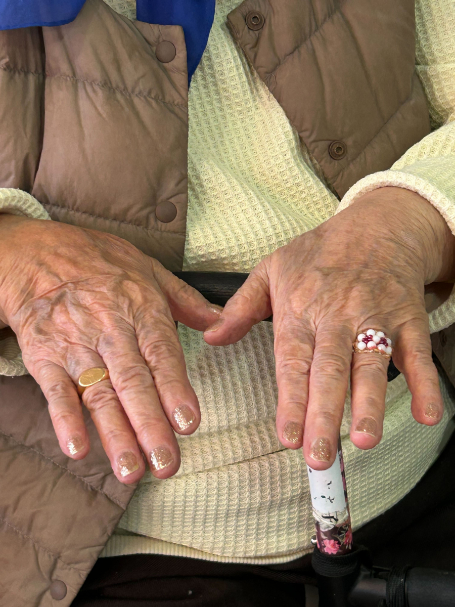 嬉しそうに爪を見せて記念撮影(/・ω・)/♪