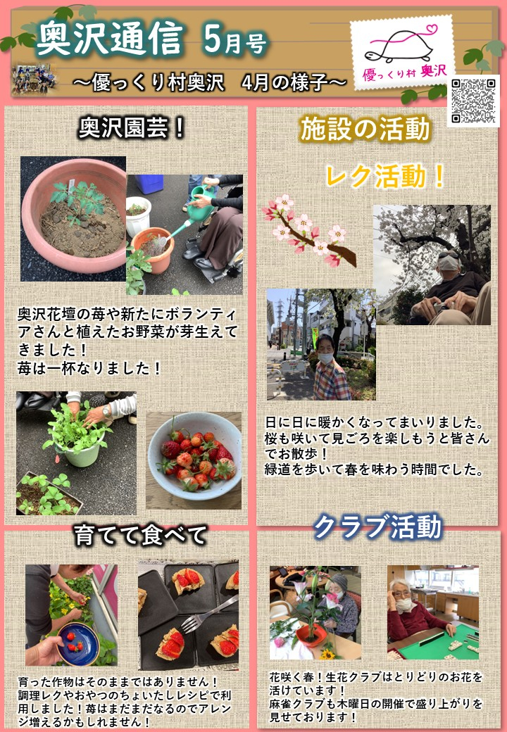 奥沢通信の5月号です!4月の様子をお伝えします!