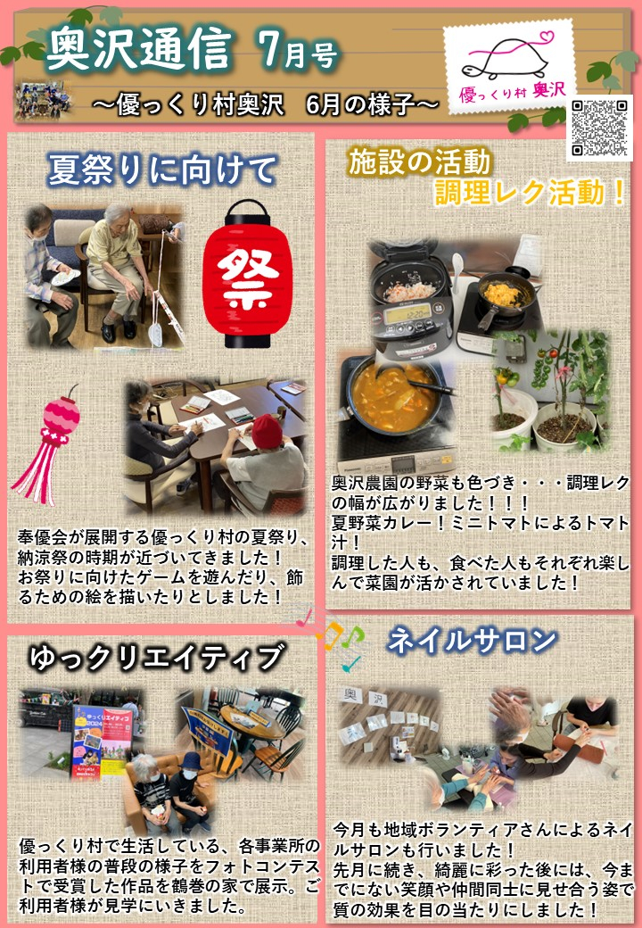 奥沢通信の7月号です!6月の様子をお伝えします!