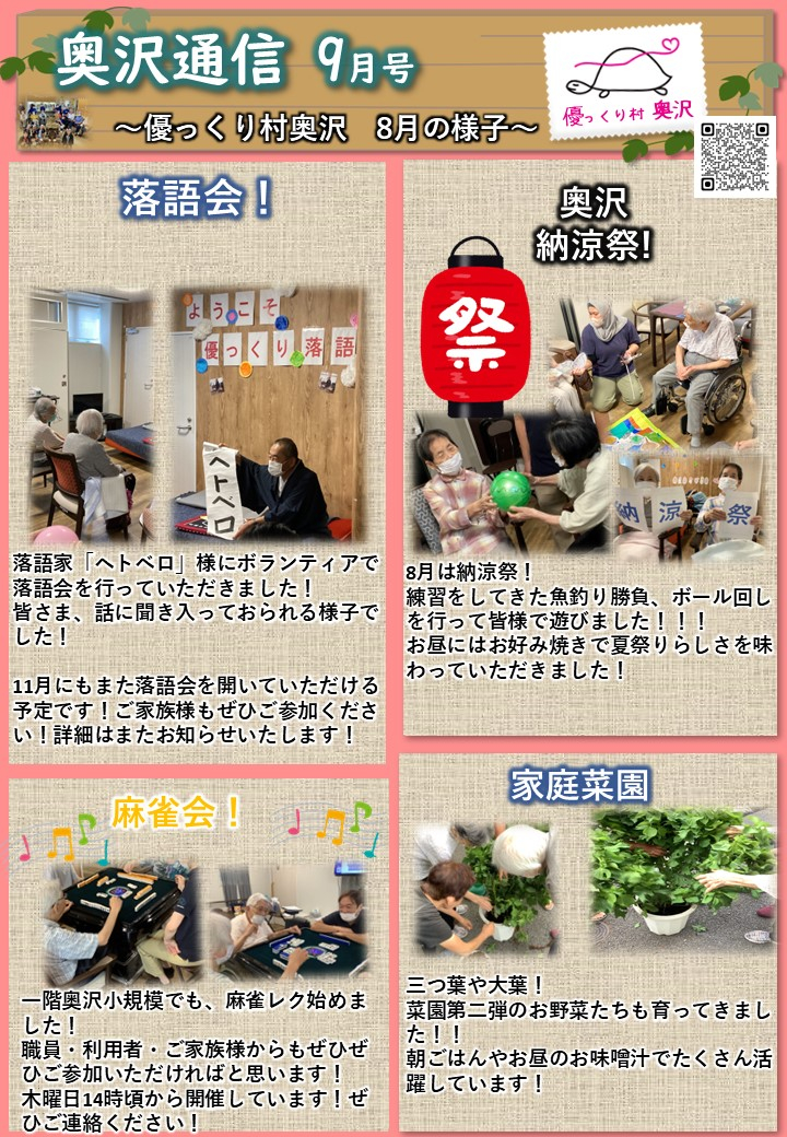 奥沢通信の9月号です!8月の様子をお伝えします!