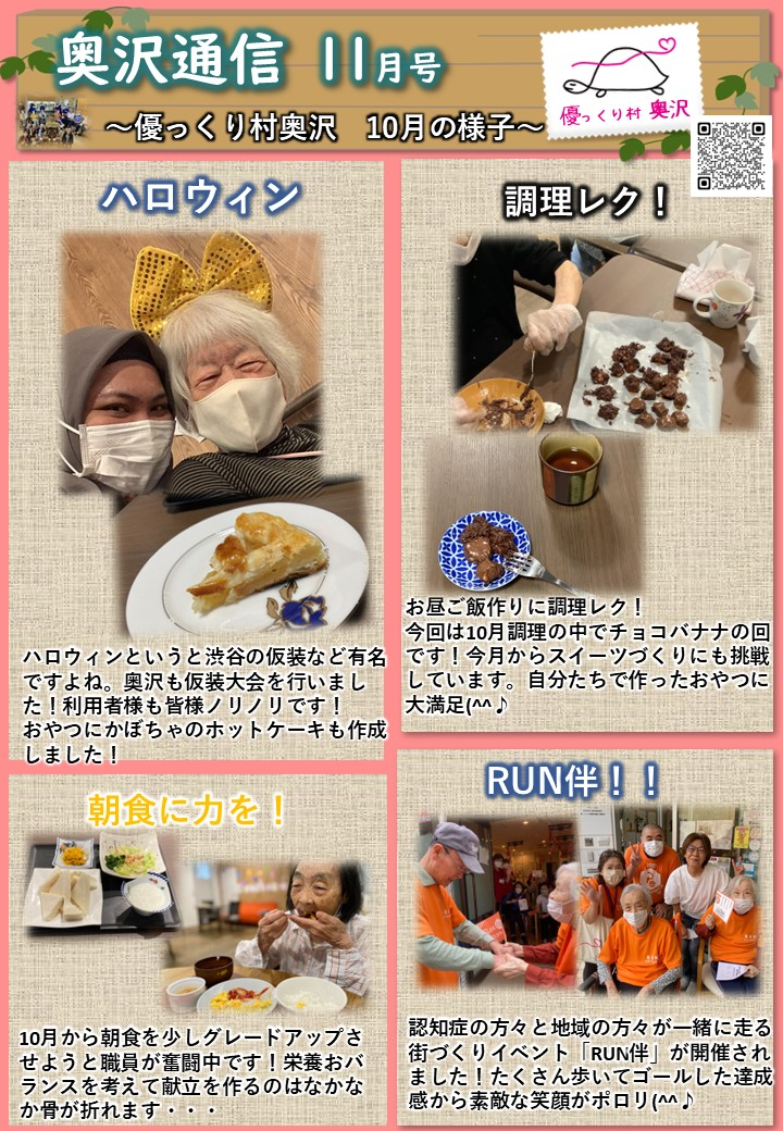 奥沢通信の11月号です!10月の様子をお伝えします!