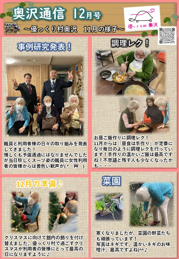 奥沢通信の12月号です!11月の様子をお伝えします!
