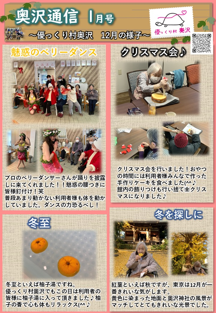 奥沢通信の1月号です!12月の様子をお伝えします!
