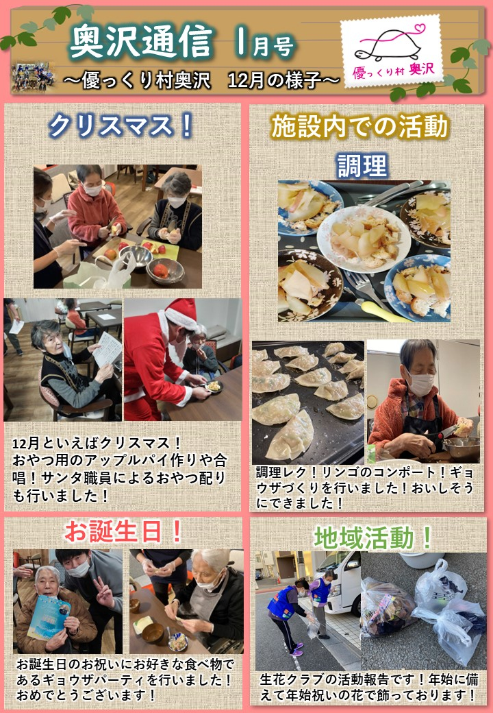 2024.01.20 お知らせ 奥沢通信1月号 Tweet シェアする 新年あけましておめでとうございます!本年もよろしくお願いいたします。 奥沢通信の1月号です!12月の様子をお伝えします! 一覧へ戻る