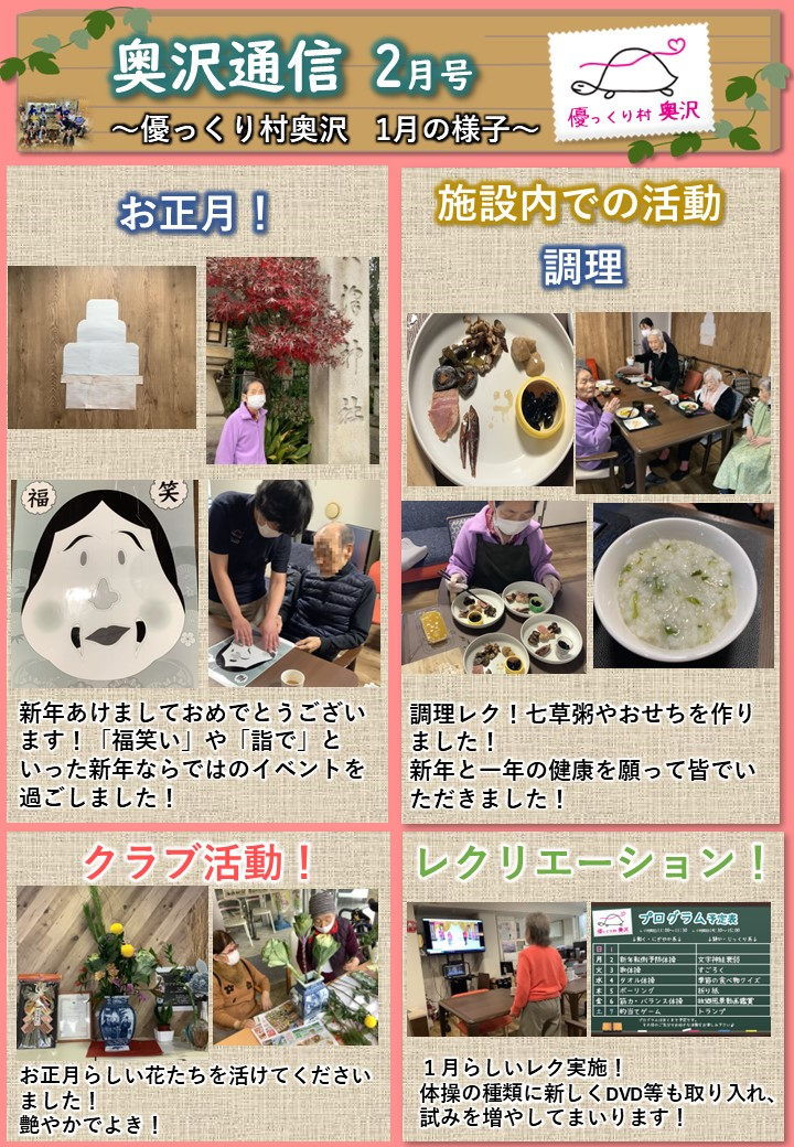 奥沢通信の2月号です!1月の様子をお伝えします!
