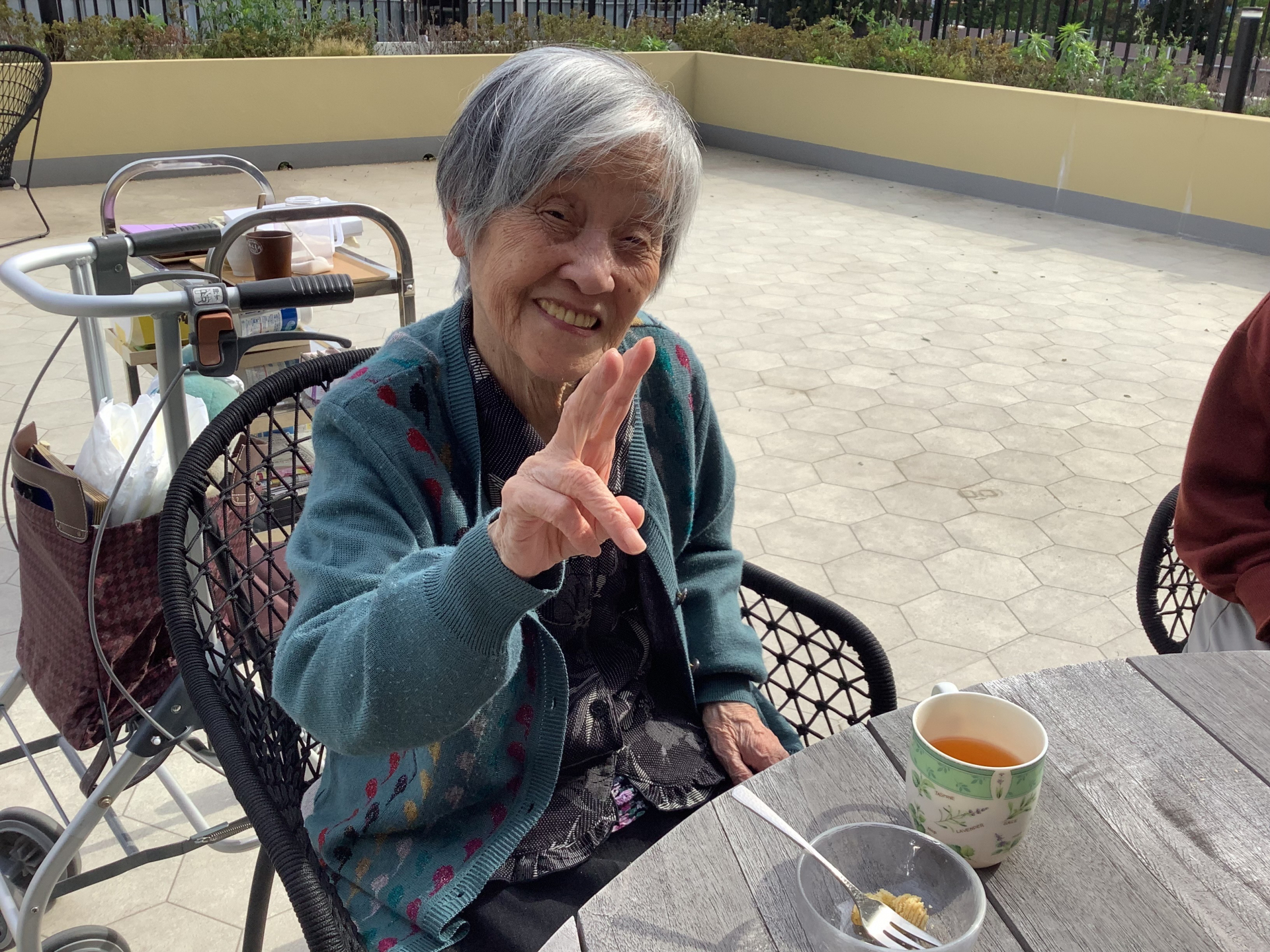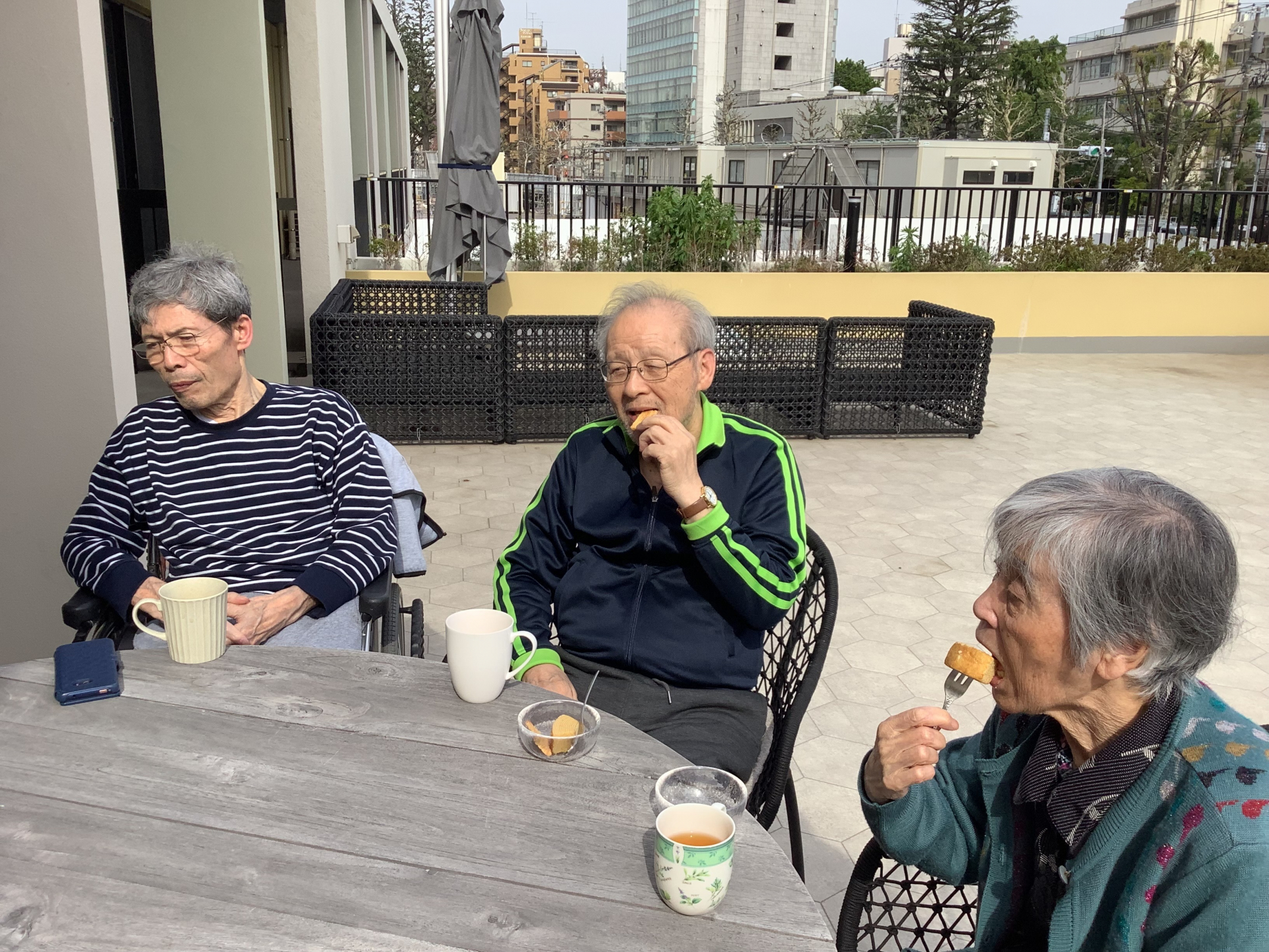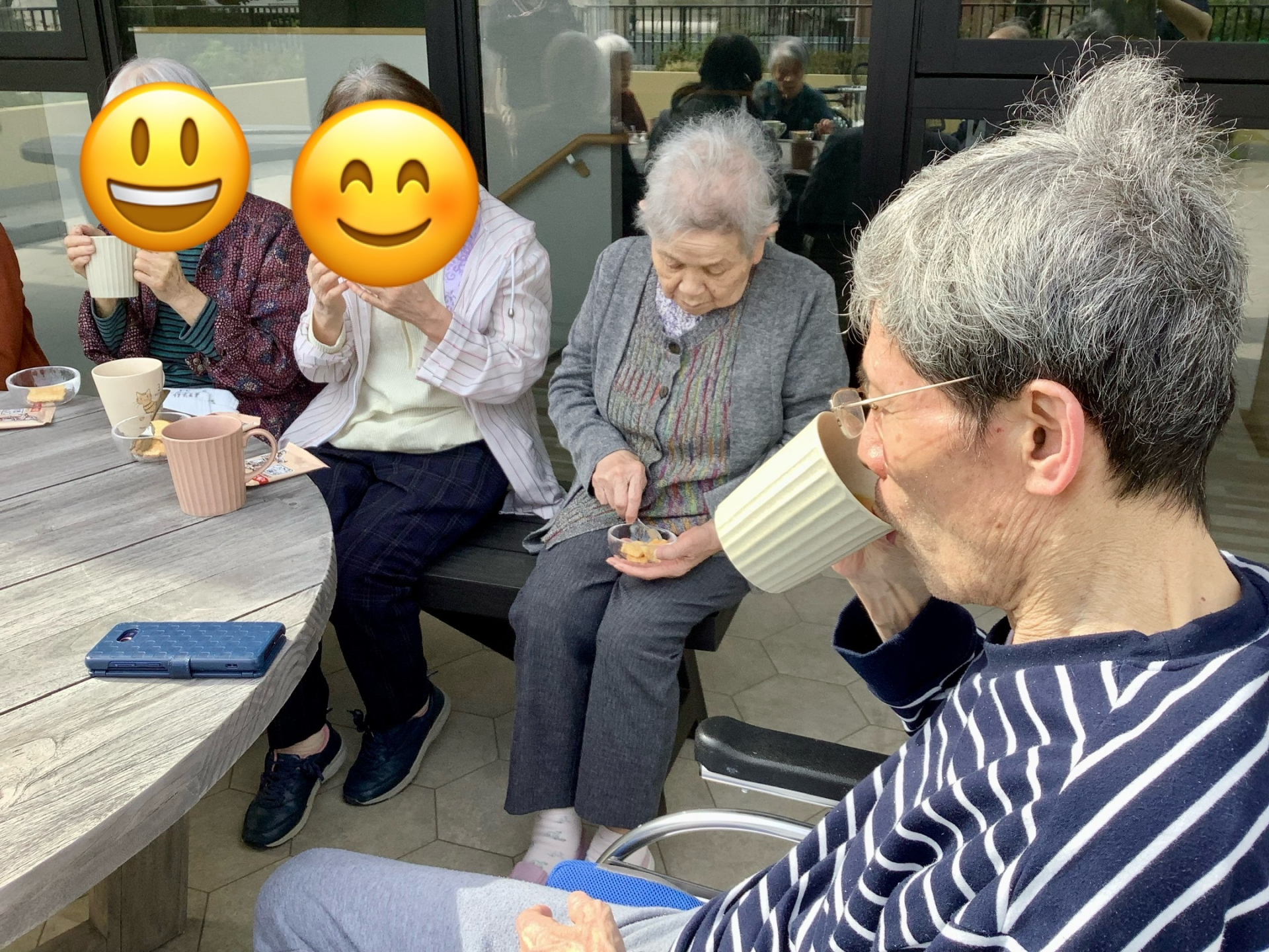 今日はいいお天気でしたので、テラスでおやつの時間となりました(^^)/