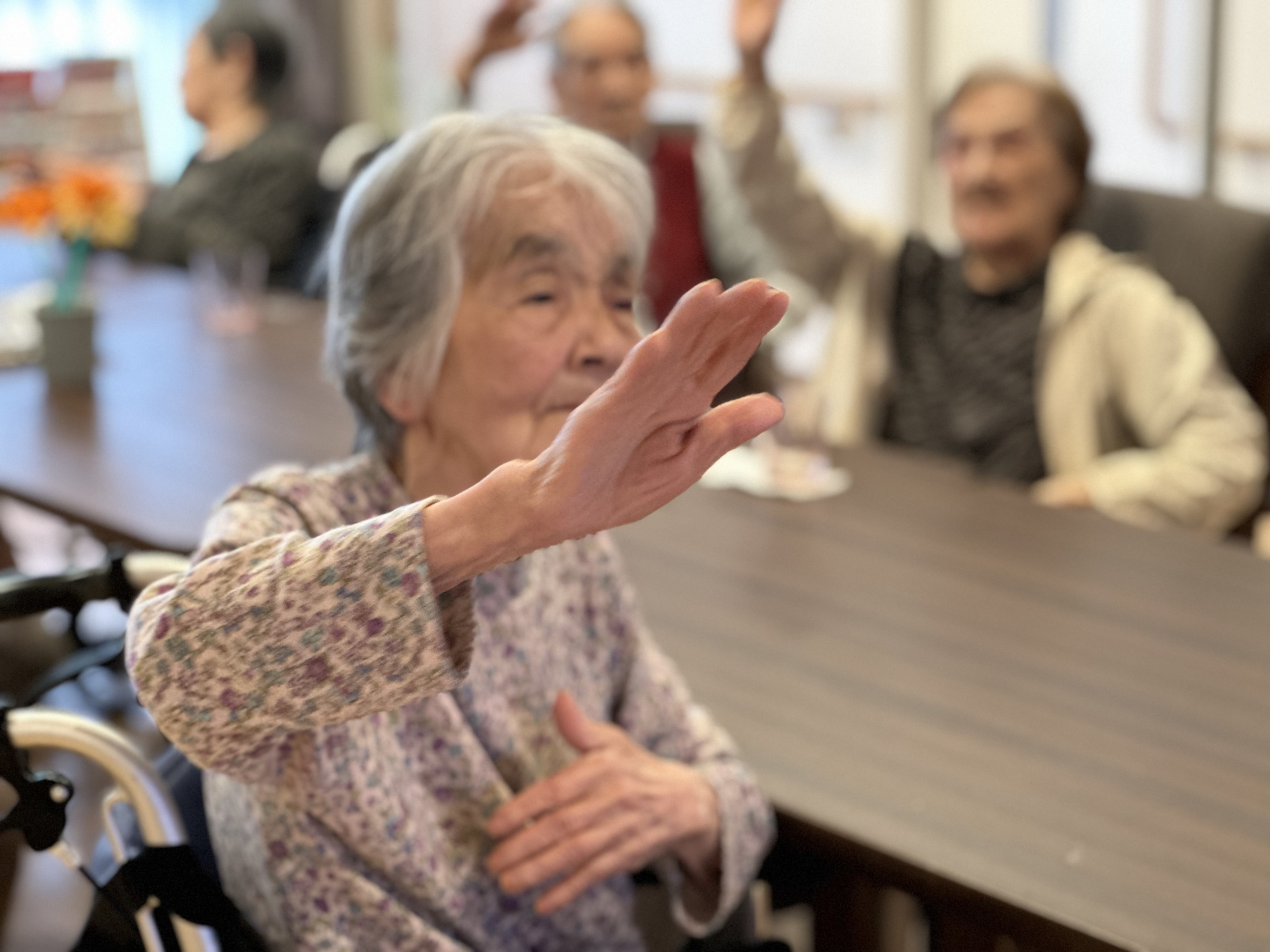 今日の午前中は水分補給でお茶を召し上がった後は、皆さんで体操です♪