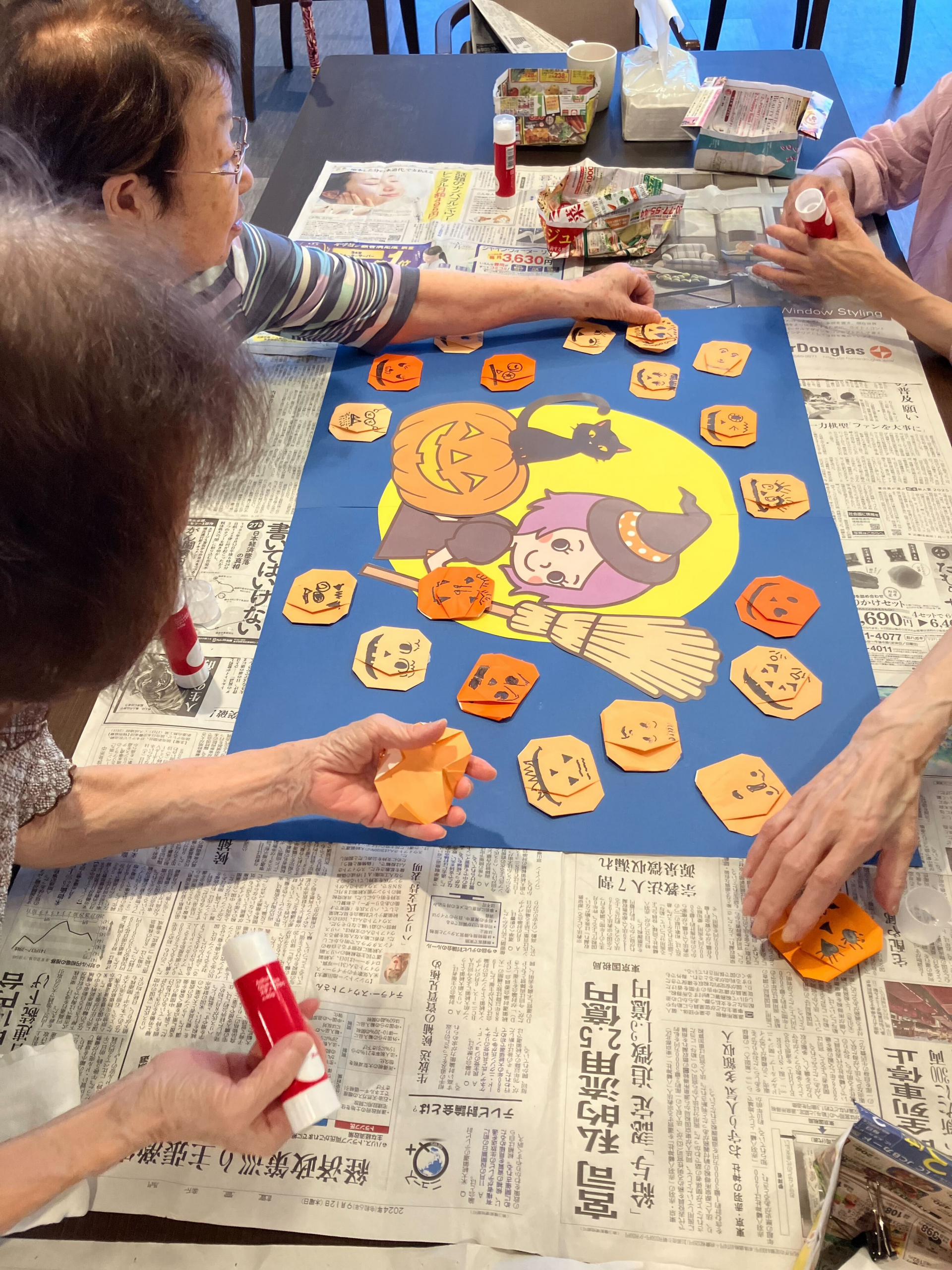 かぼちゃを折って、皆さんに顔を書いてもらいました(^^)/