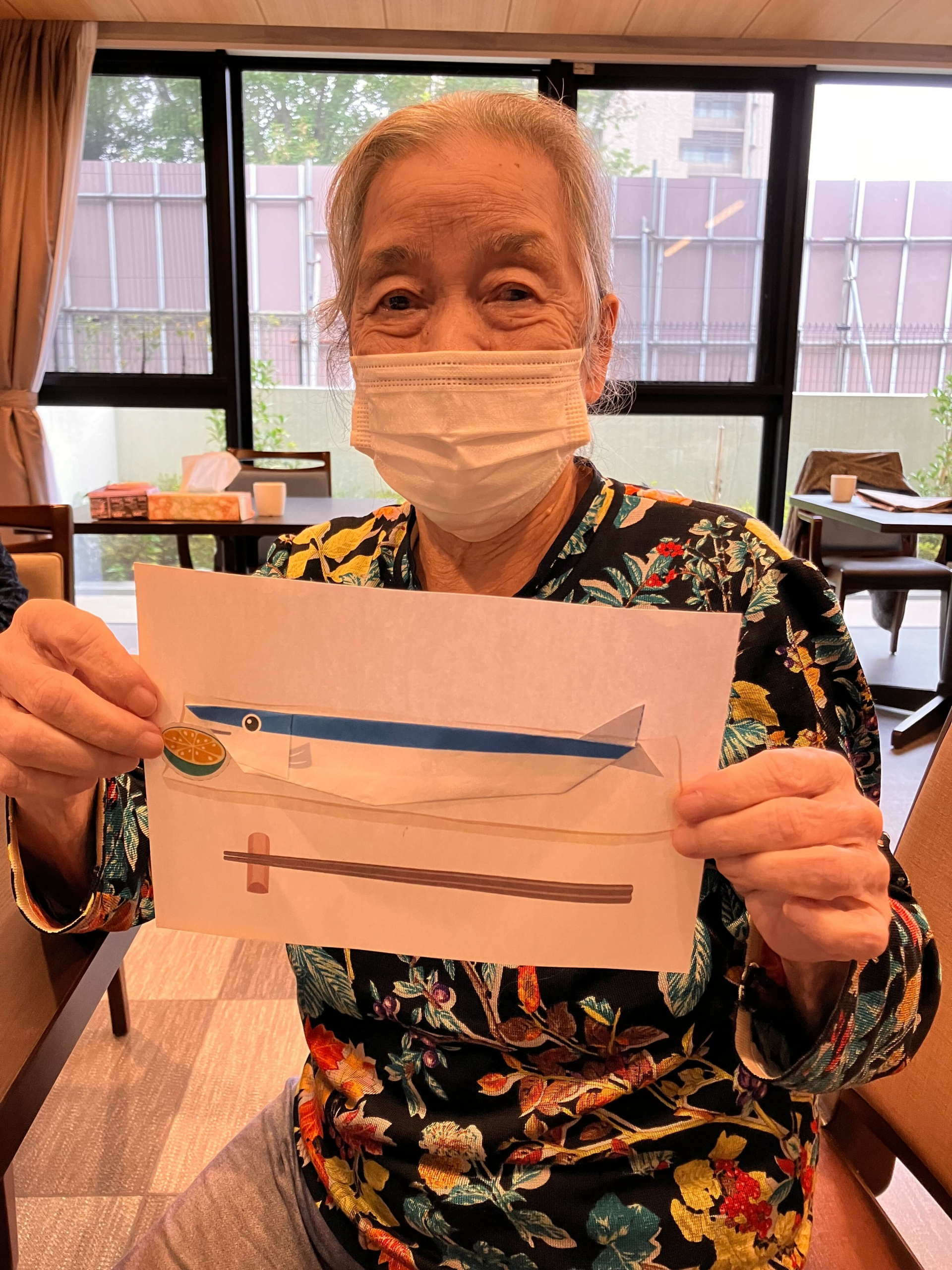 折り紙で秋の味覚、さんまを折りました!(^^)!