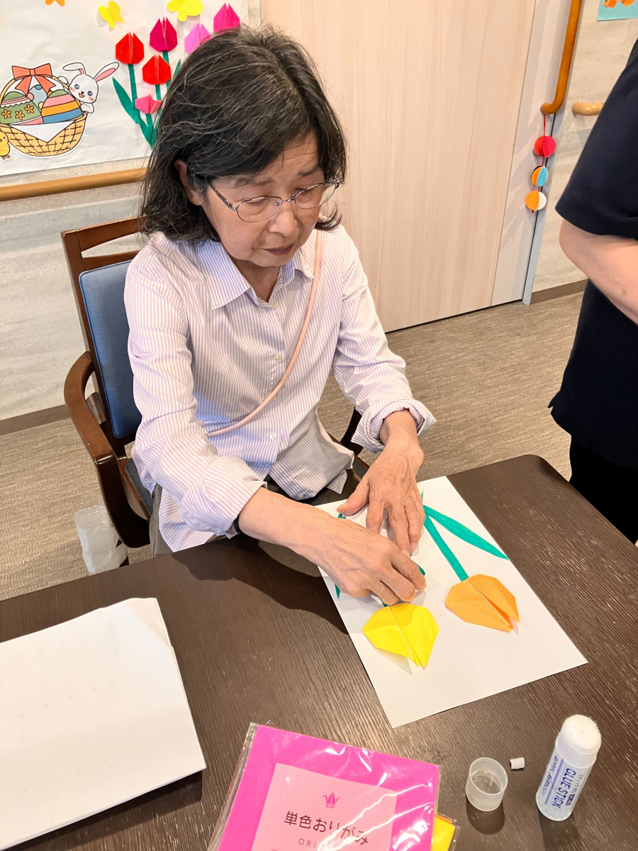 2026.04.05 活動報告 チューリップ Tweet シェアする 折り紙でチューリップを作りました(*^^)v 台紙に貼って完成です(*'▽') とてもきれいなチューリップの花が咲きました! 優っくり村小規模多機能介護板橋栄町 荻野 次の記事 2026.04.01 活動報告 4月のカレンダー 一覧へ戻る
